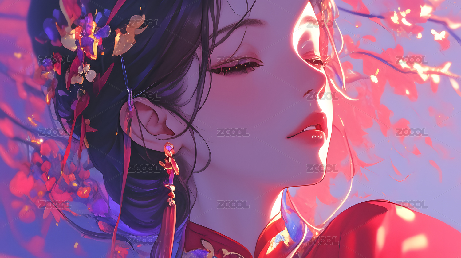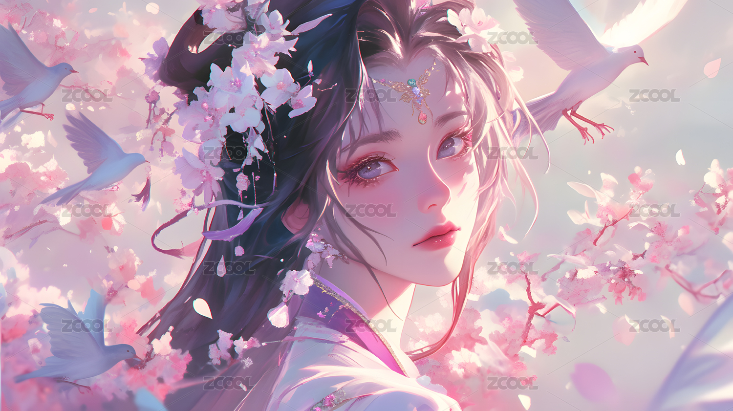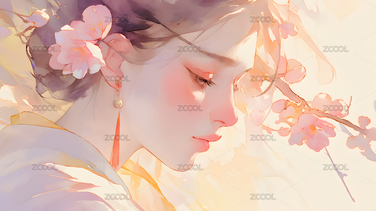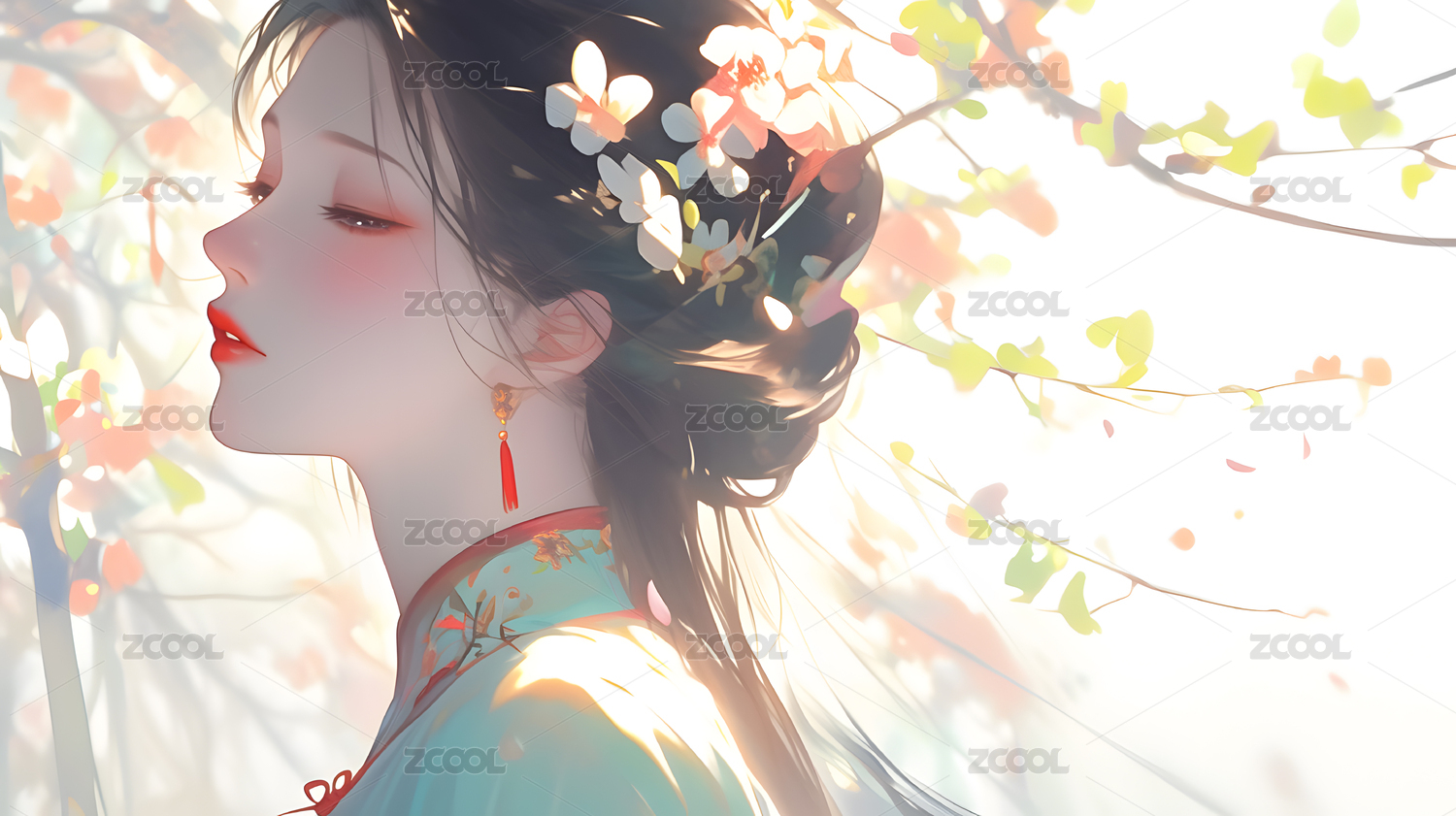 手绘卡通动漫唯美可爱的中国古风古装女孩插