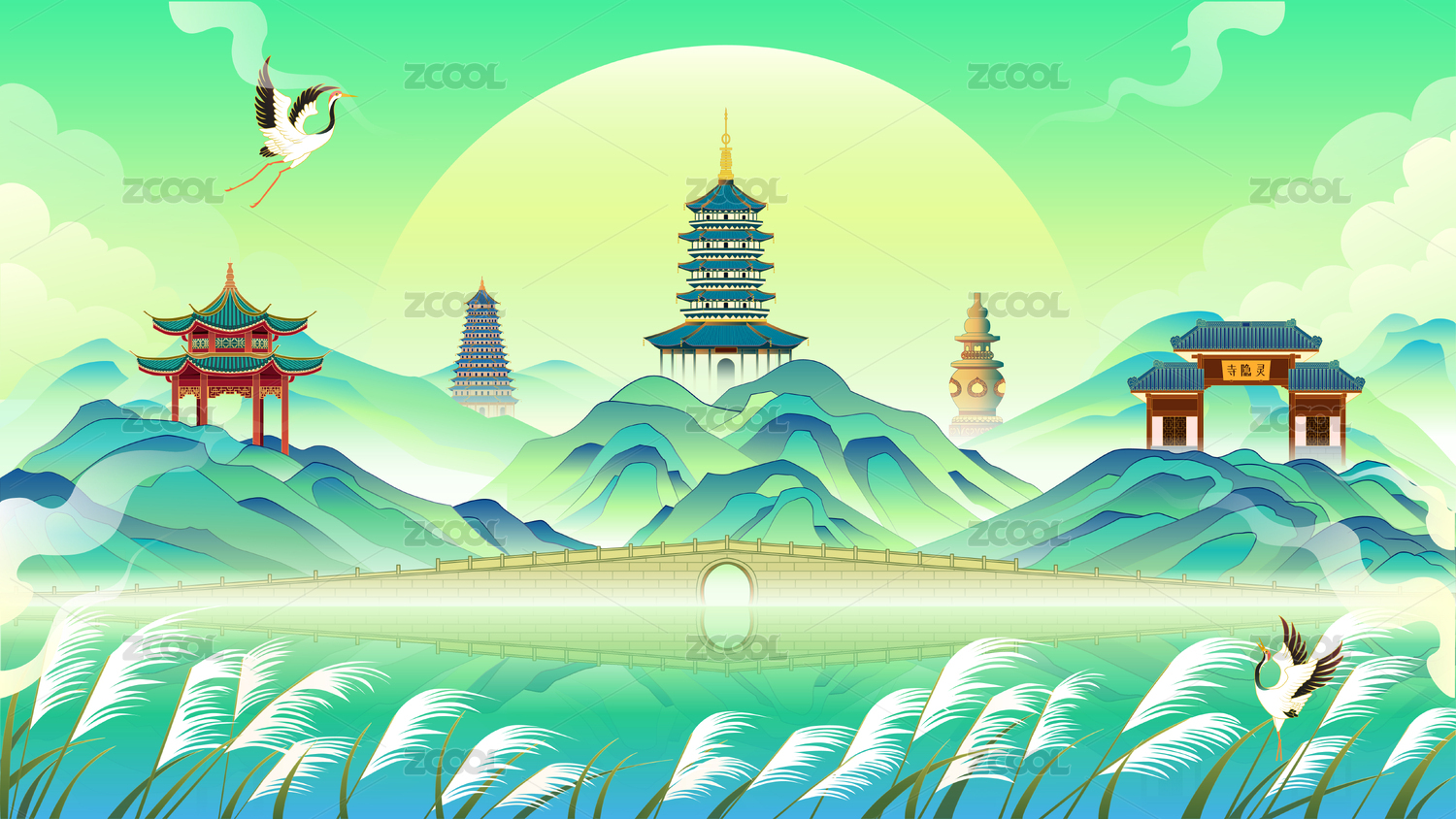 江苏扬州大明寺栖灵塔建筑风景矢量插画