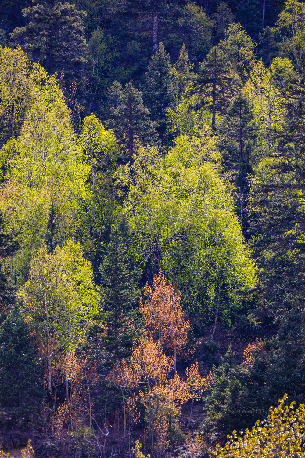 高原湿地黄龙,形形色色的树。