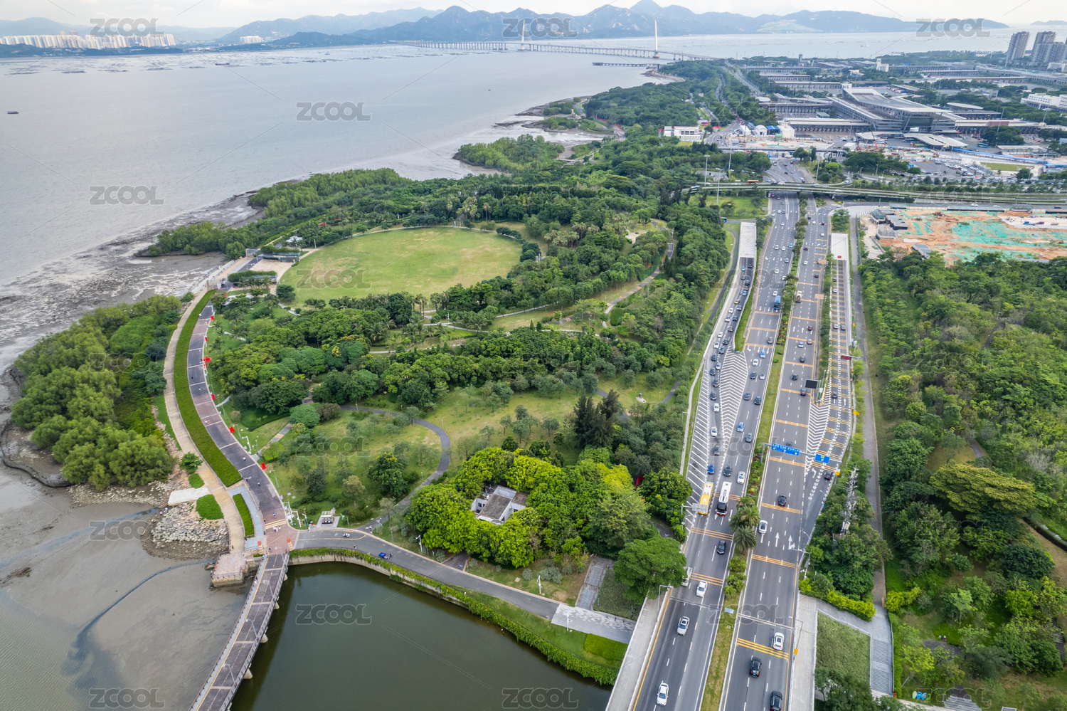 早上多云的深圳湾公园深圳湾大桥深圳湾口岸后海大桥