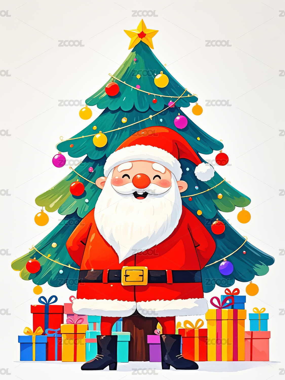 圣诞节,冬季,圣诞老人,圣诞树,礼物,圣诞礼物,儿童,插画,装饰