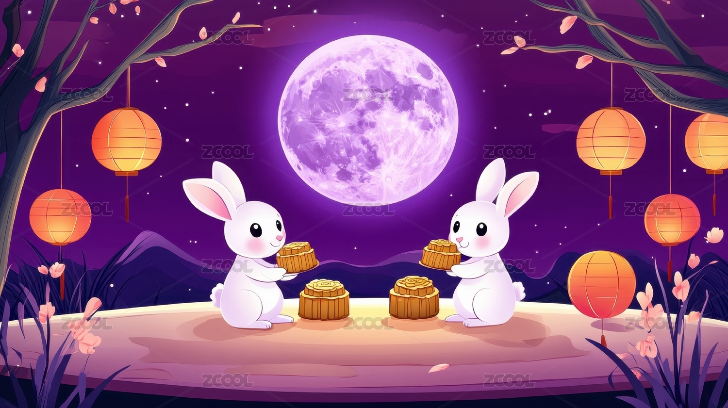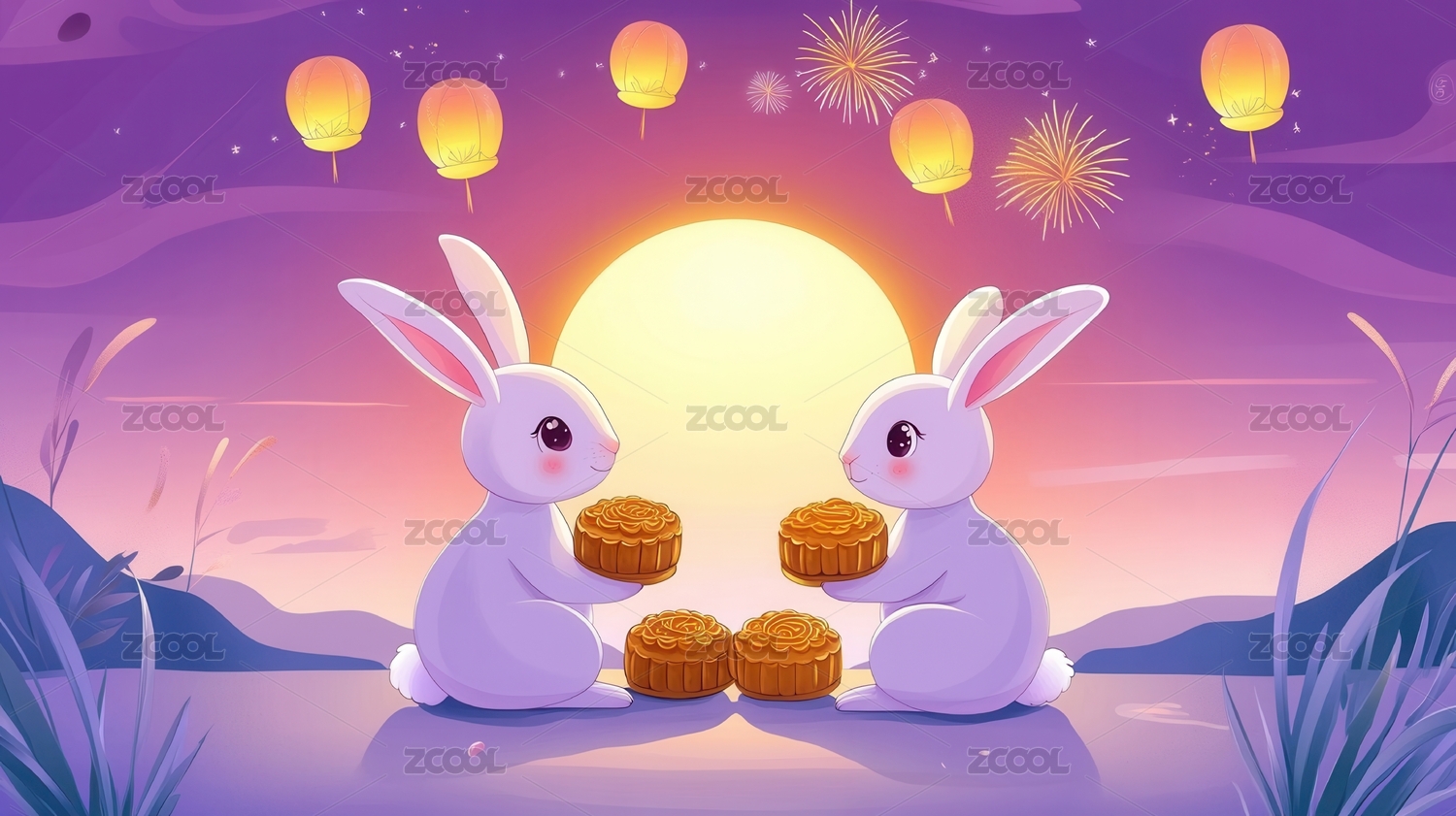 中秋玉兔和花灯