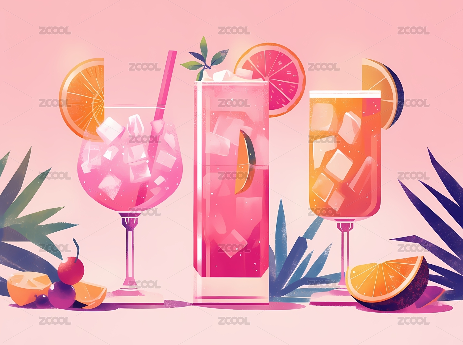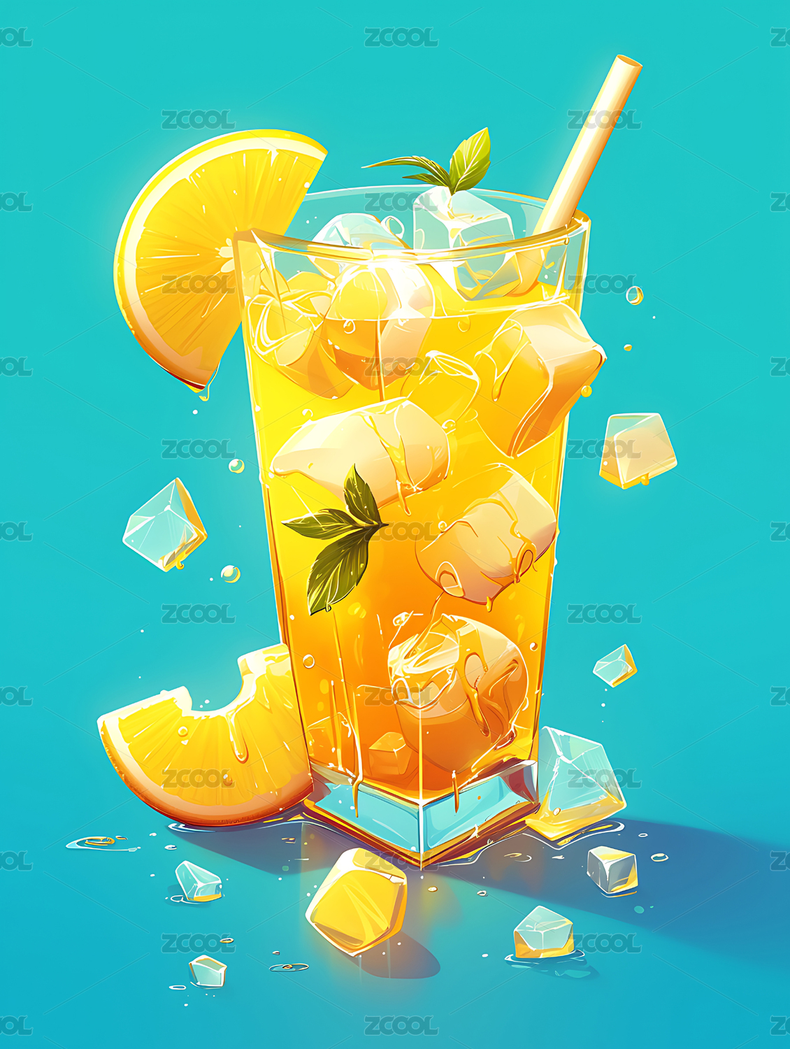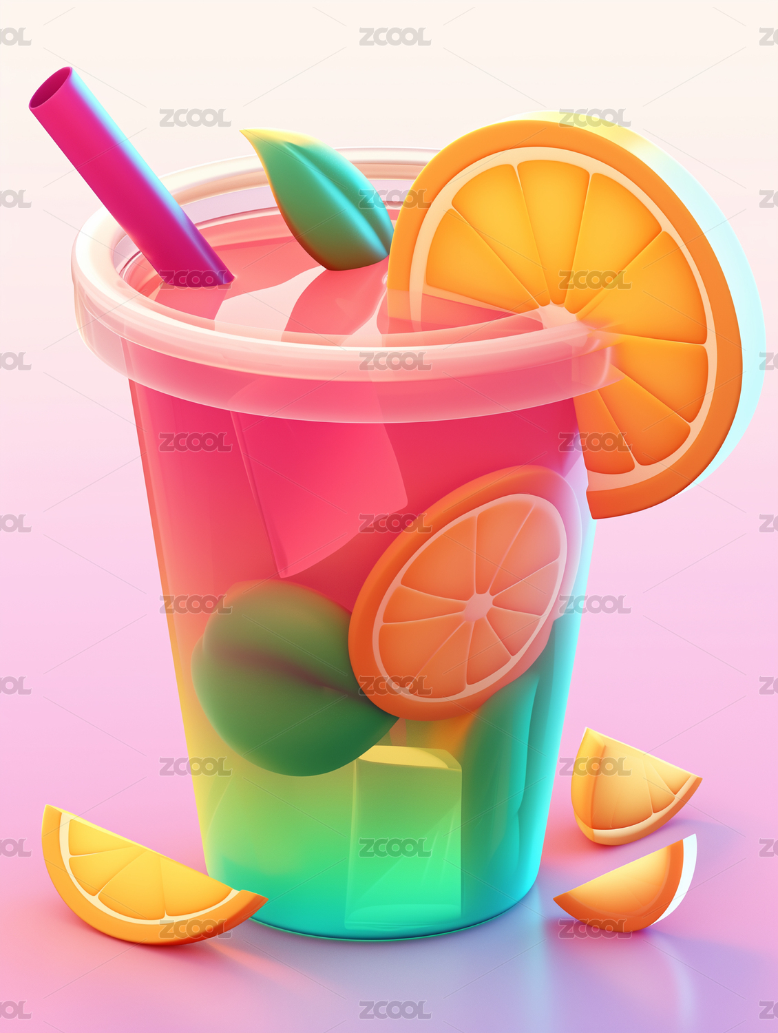 3D,插画,冷饮,饮品,果汁,加冰,吸管,卡通,美味,色彩明艳