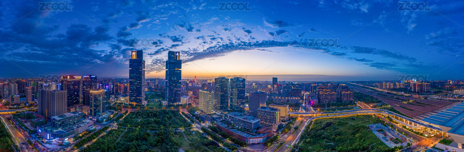 中国陕西省西安市高新区CBD商业中心航拍城市风光