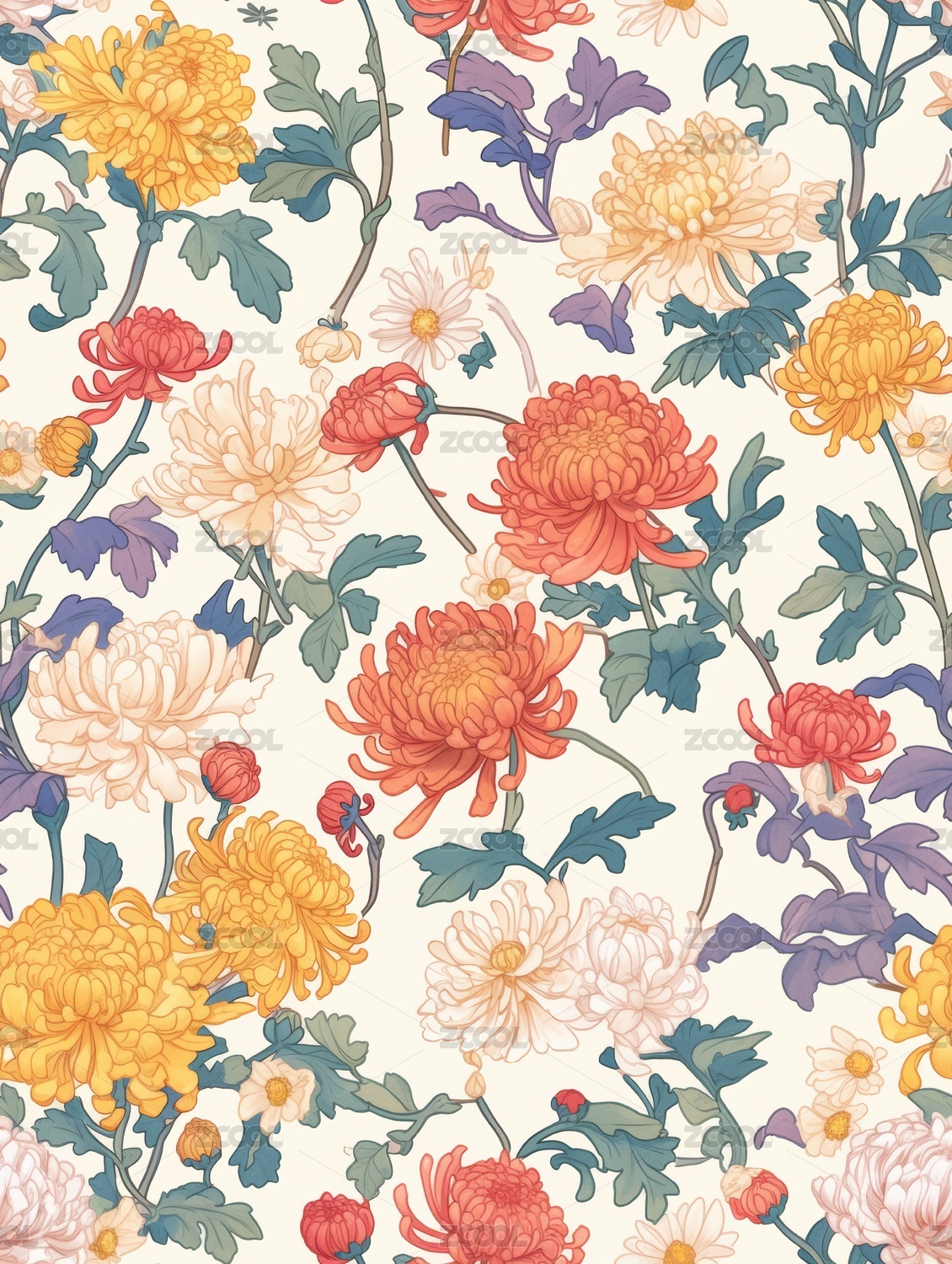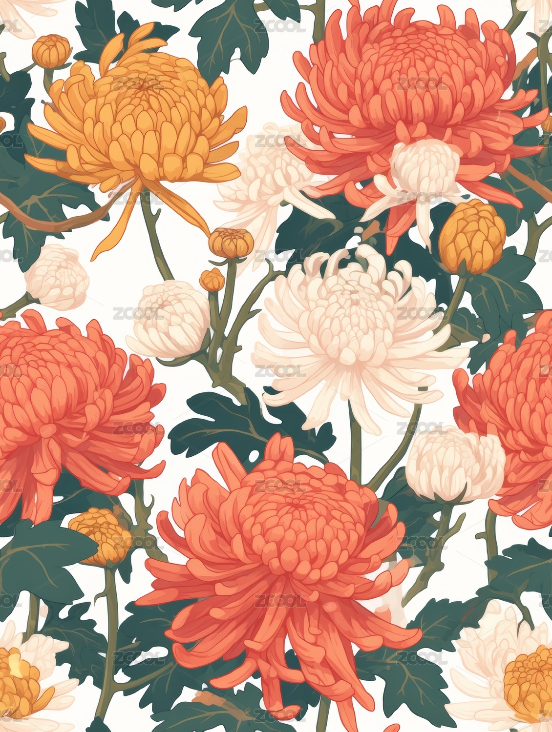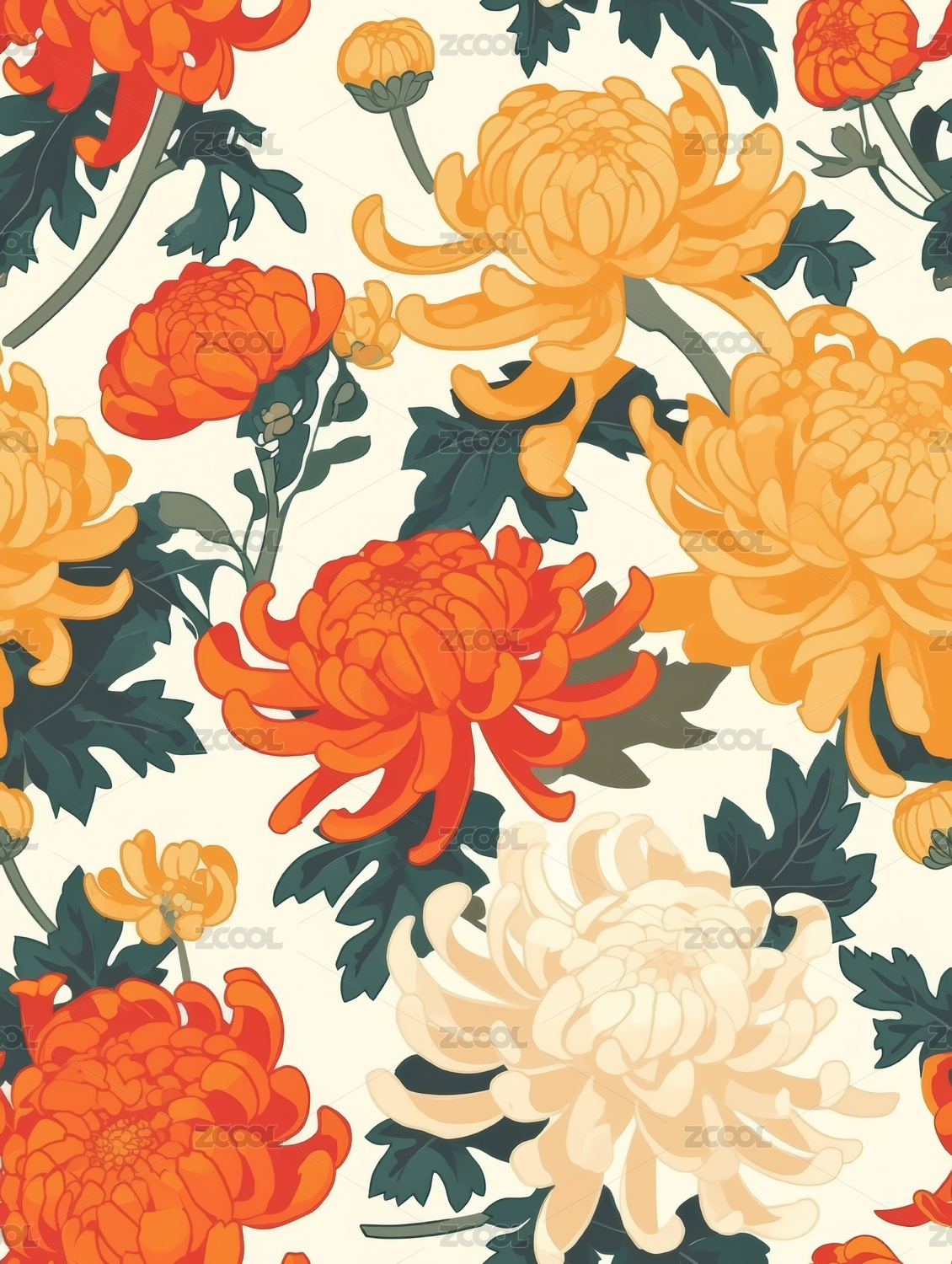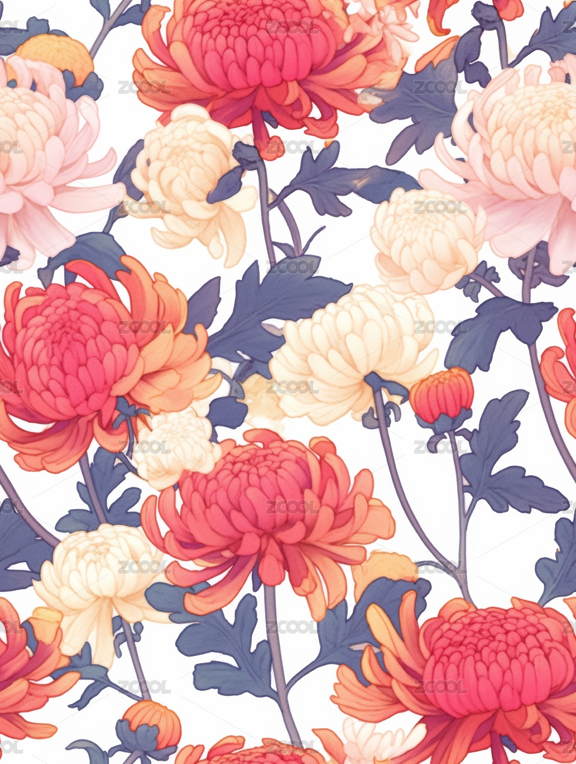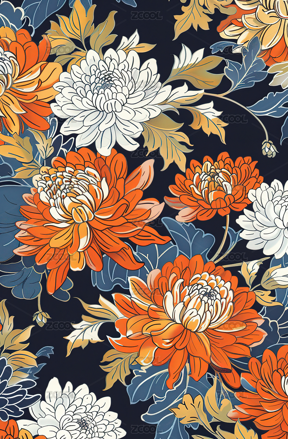 菊花 印花图案 背景图 无缝图