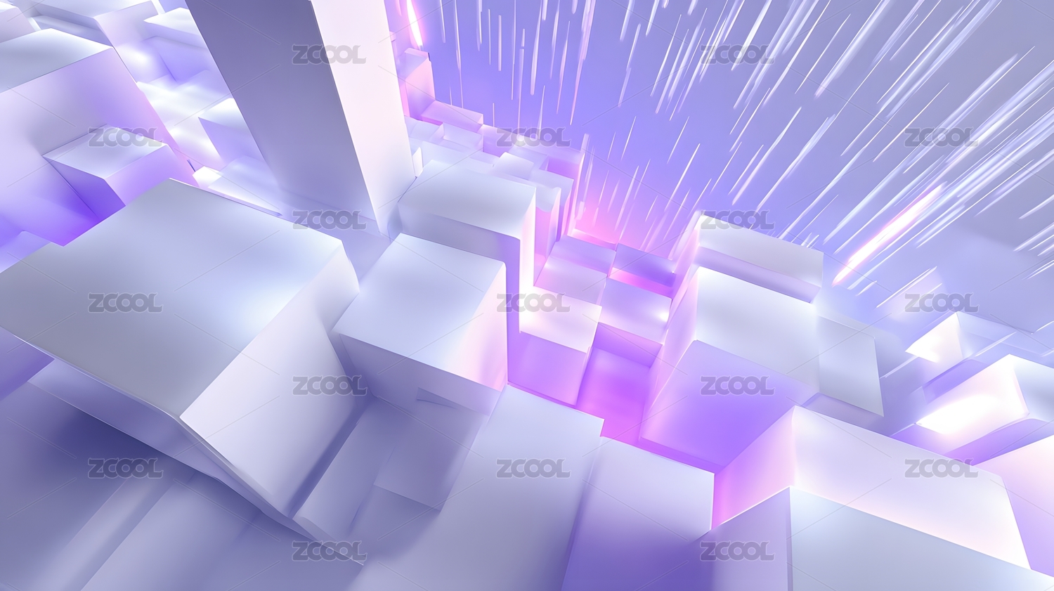 层叠排列荧光色立方体玻璃晶体3D立体插画