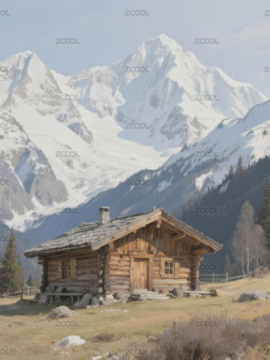 雪山下的木屋