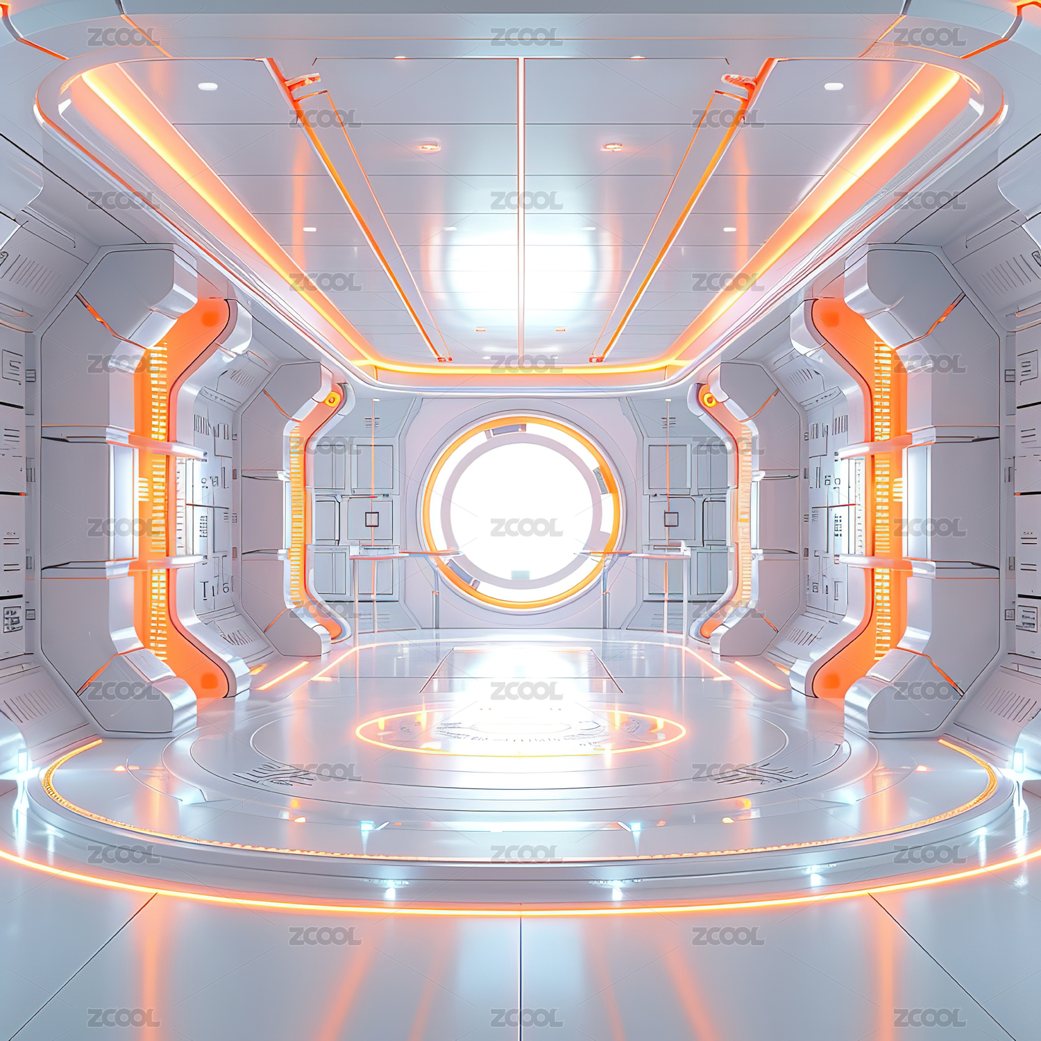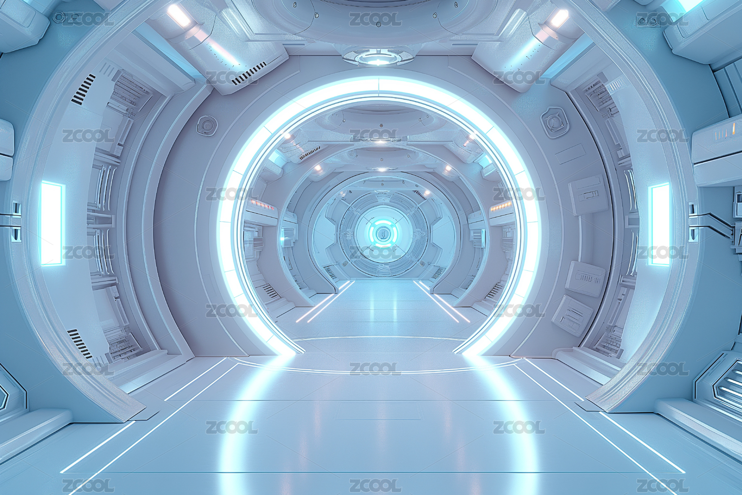 蓝色科幻空间太空仓内部,科技空间广场平台