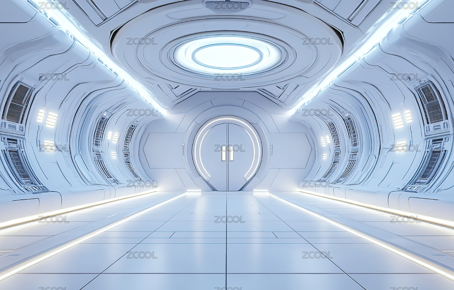 3D渲染科幻空间站宇宙飞船走廊概念插图