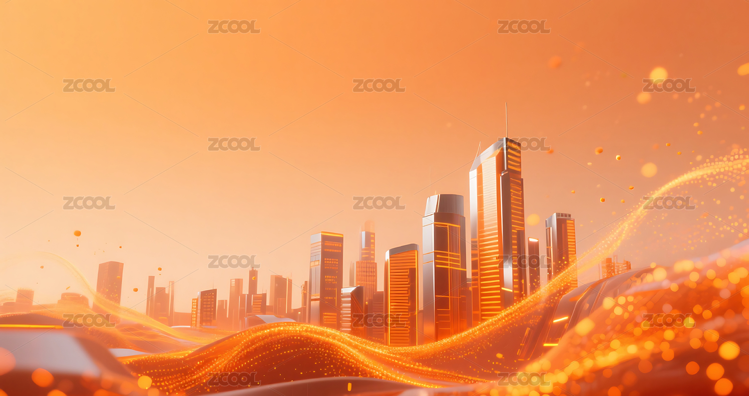 橙色商务科技流动城市建筑主视觉背景