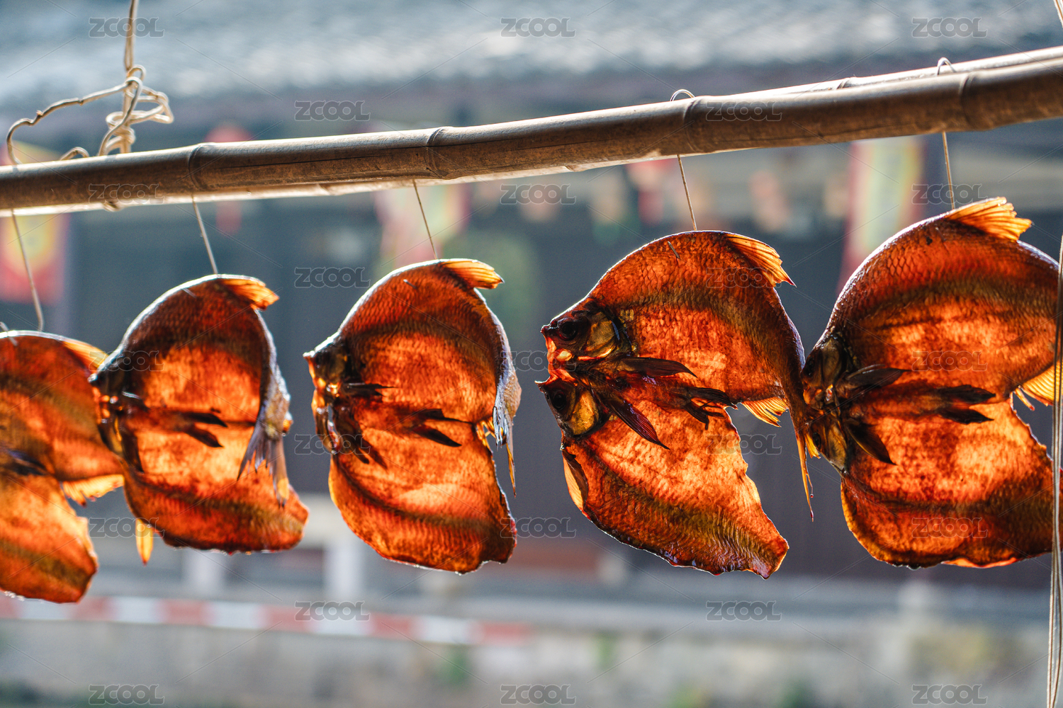 阳光里竹架下多条新鲜超大绍兴产青鱼干