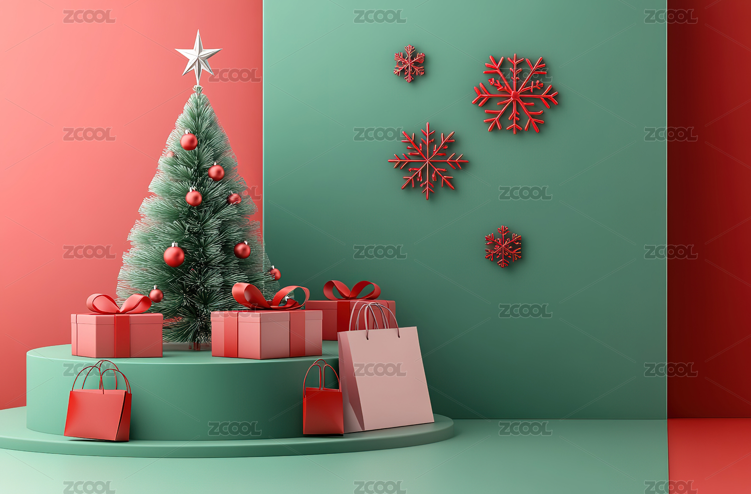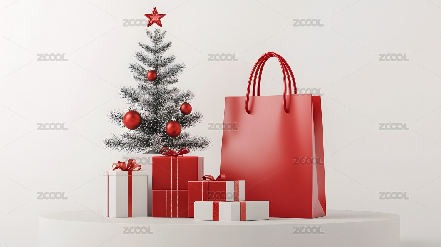圣诞节红色购物袋礼品场景