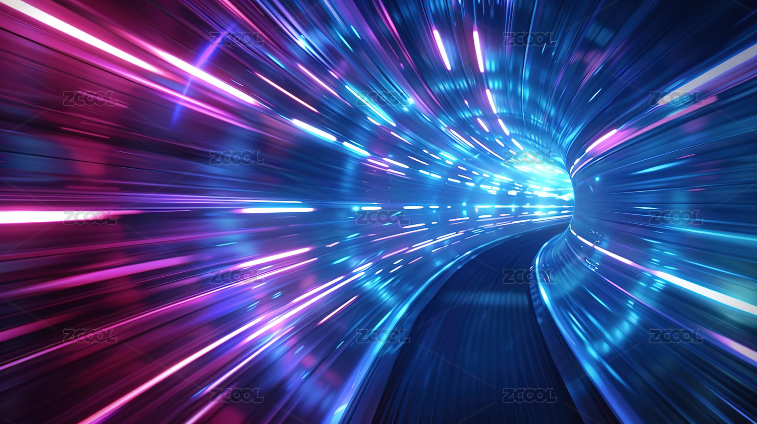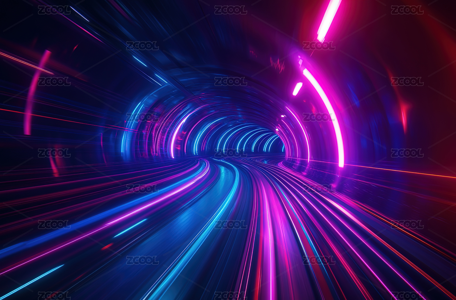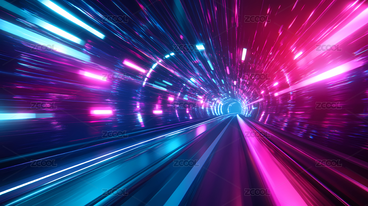 霓虹灯科幻线条数据未来高科技虚拟现实隧道