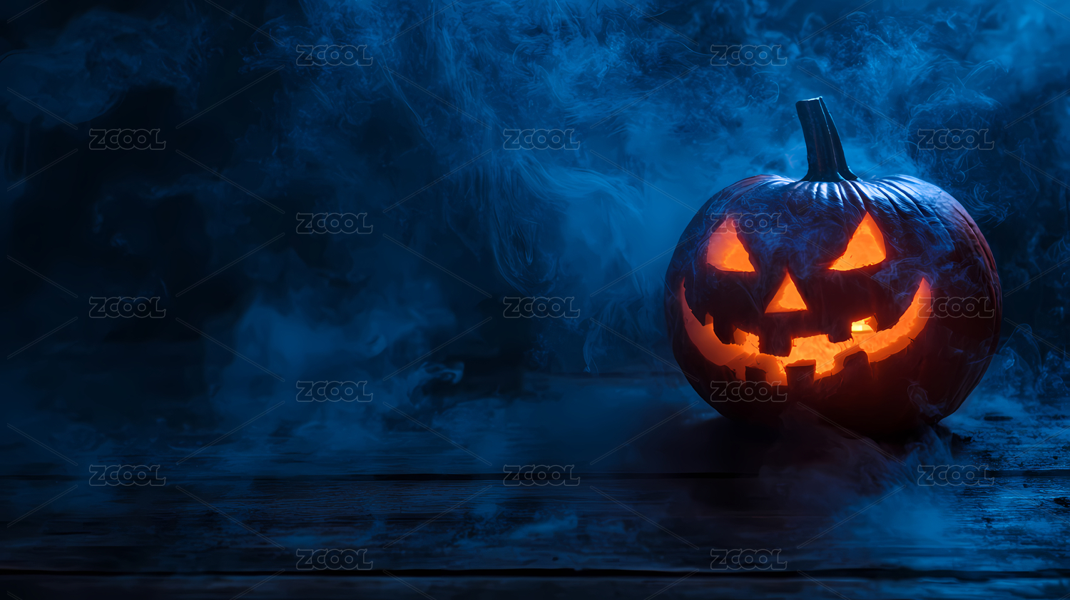 万圣节南瓜灯在烟雾中的恐怖场景