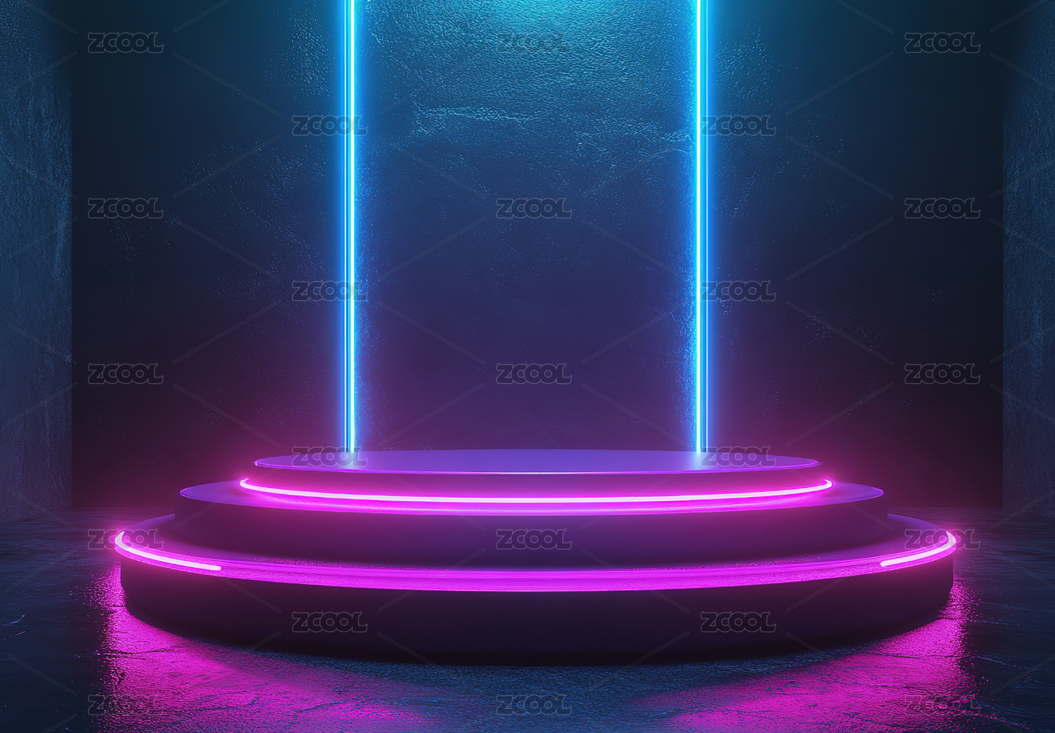 紫色平台与霓虹灯柱