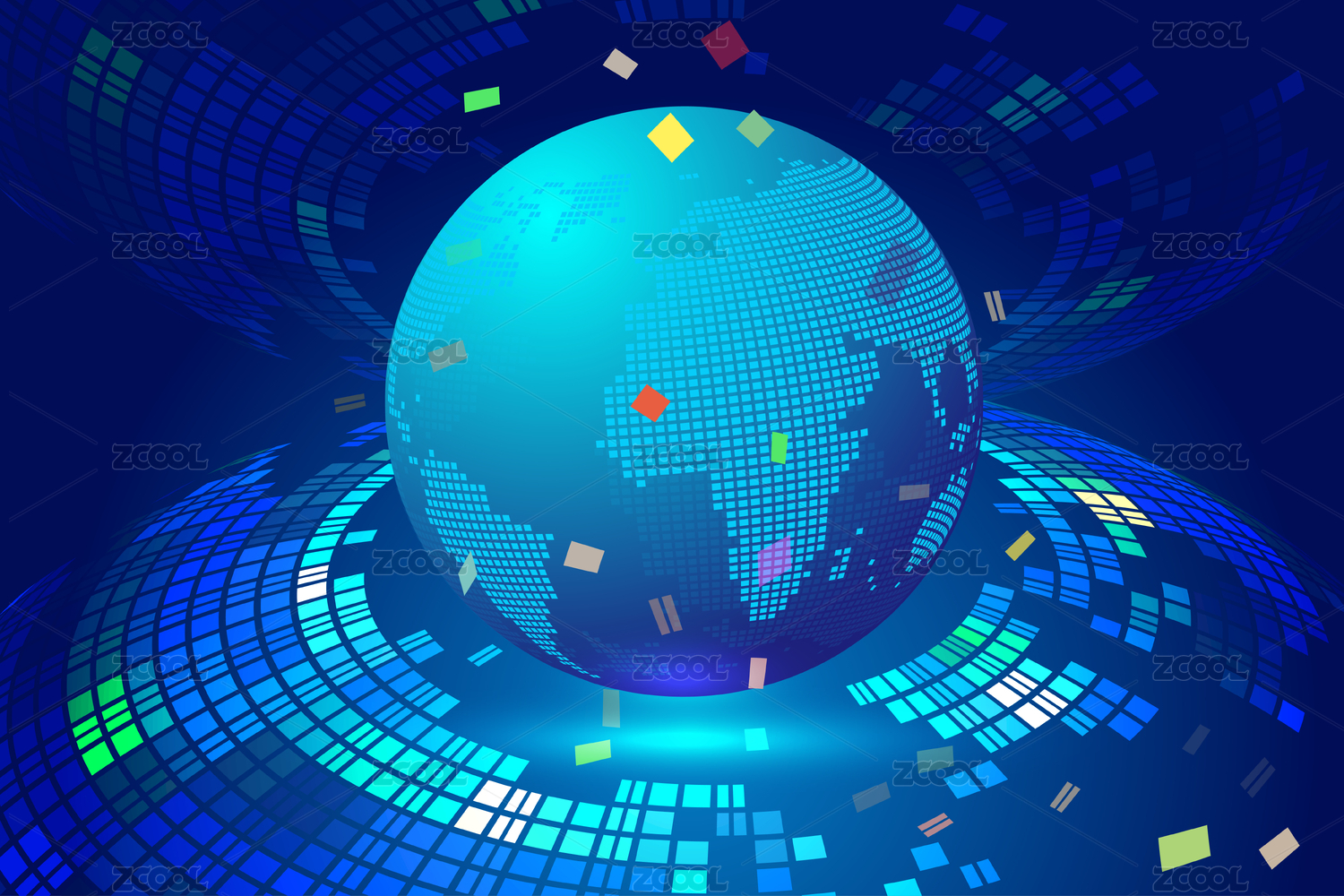 方块组成的3D球形世界地图,科学技术矢量背景图