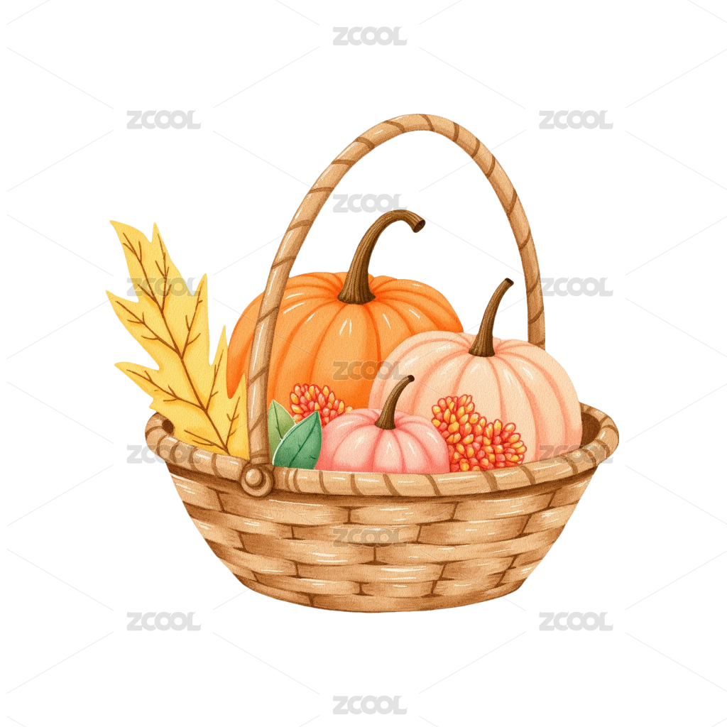 AIGC202402,扁平,水彩,秋天,写意,丰收,食物,南瓜