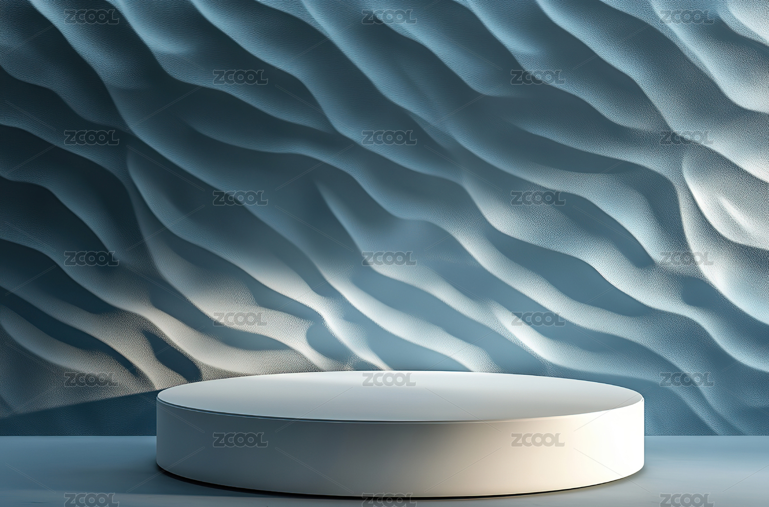 白色圆形讲台与波纹背景