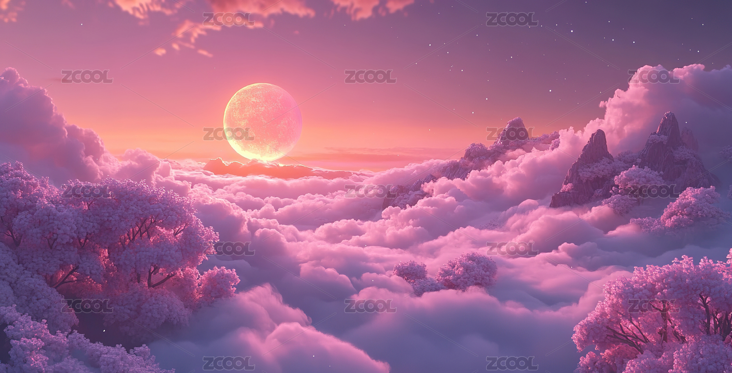 粉红梦幻山水