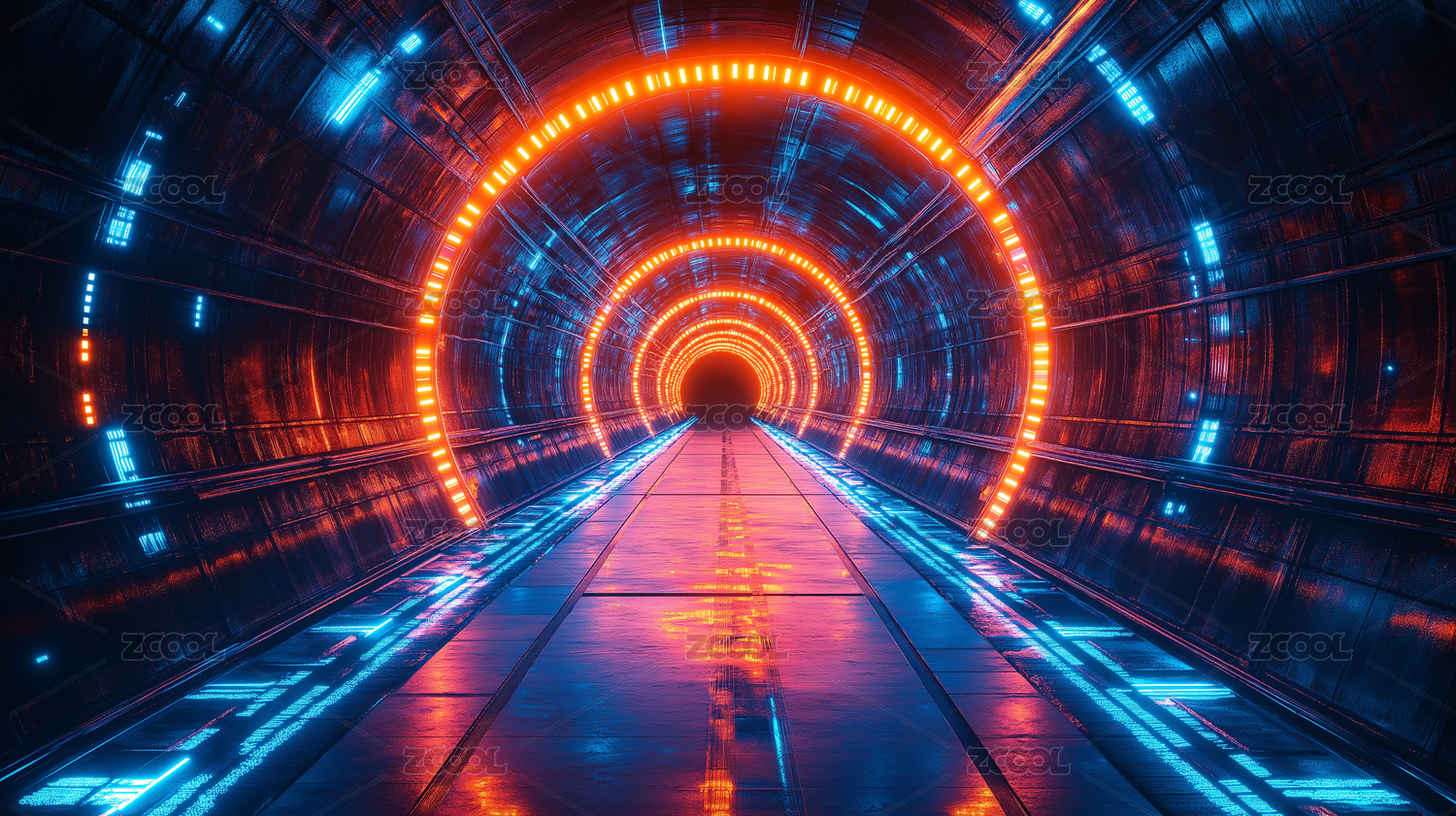 3D未来科技赛博朋克霓虹光效展台空间背景