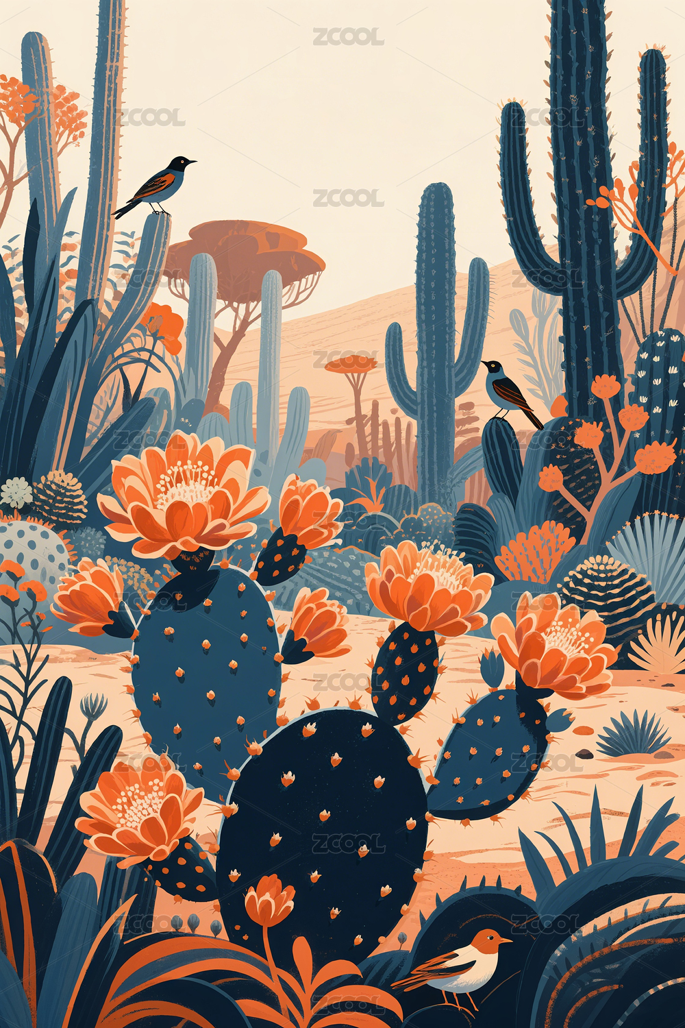 时尚,抽象,艺术,装饰,沙漠,植物,仙人掌,彩色
