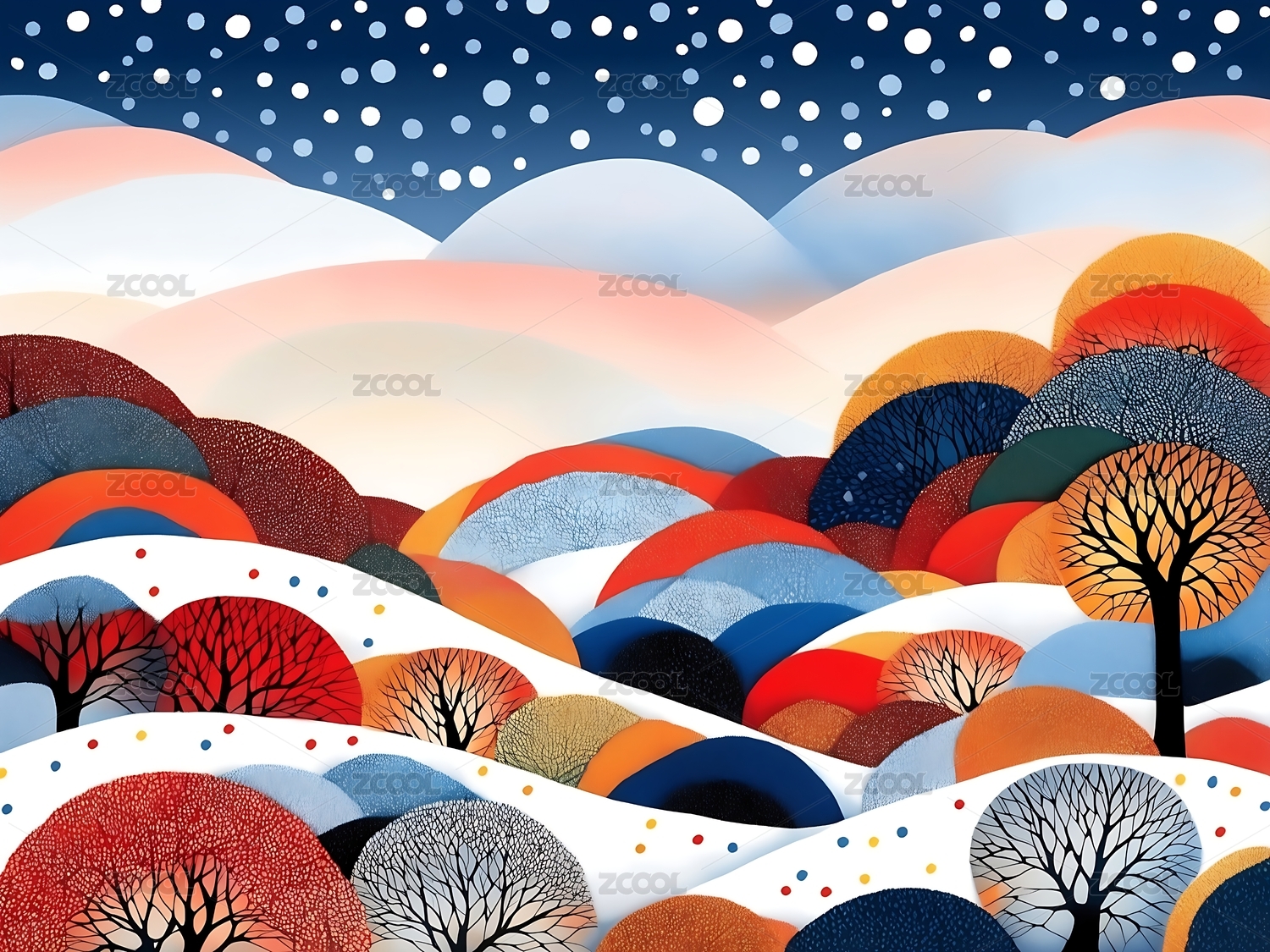 冬日雪景插画