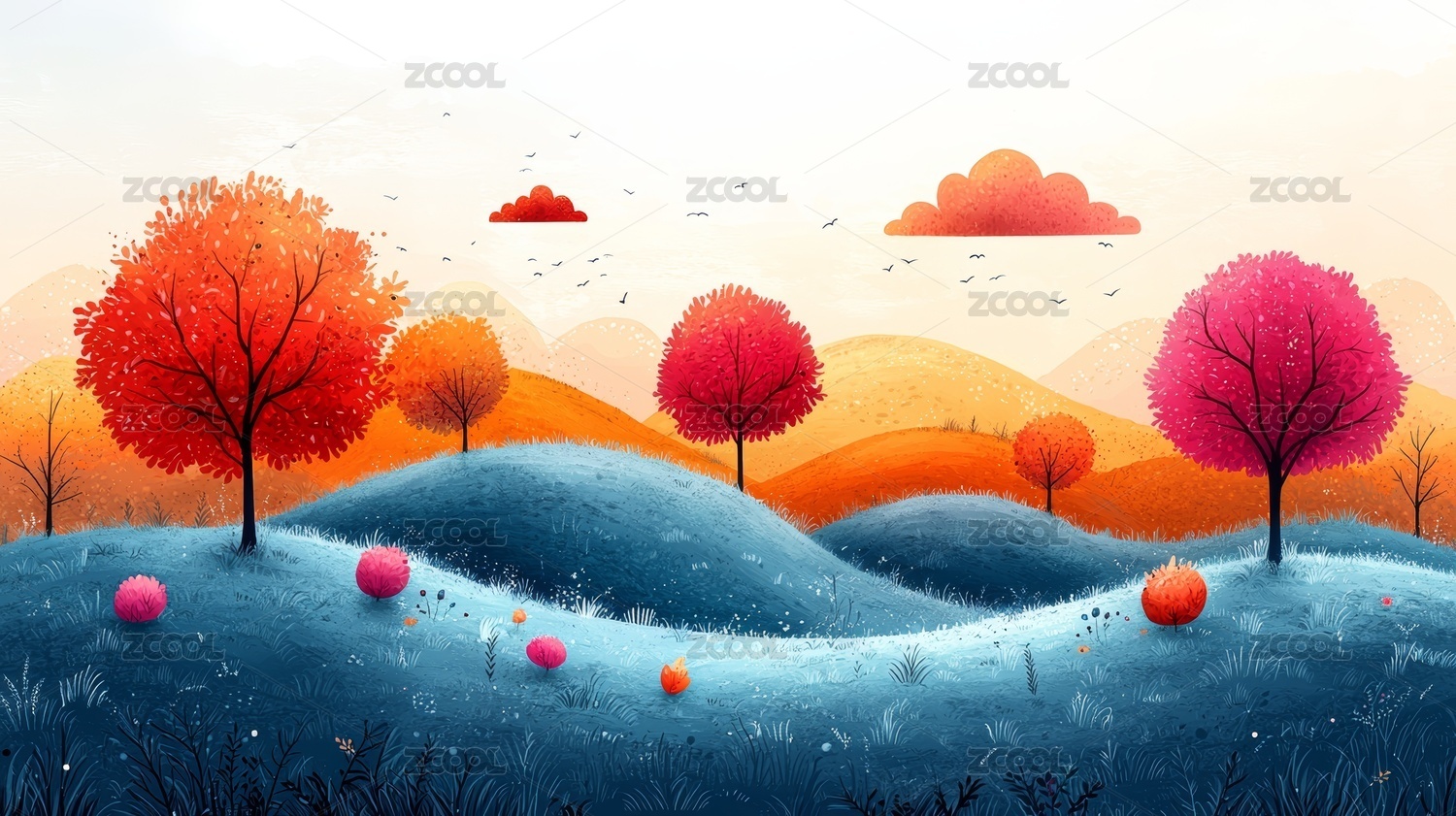 简洁抽象风景插画