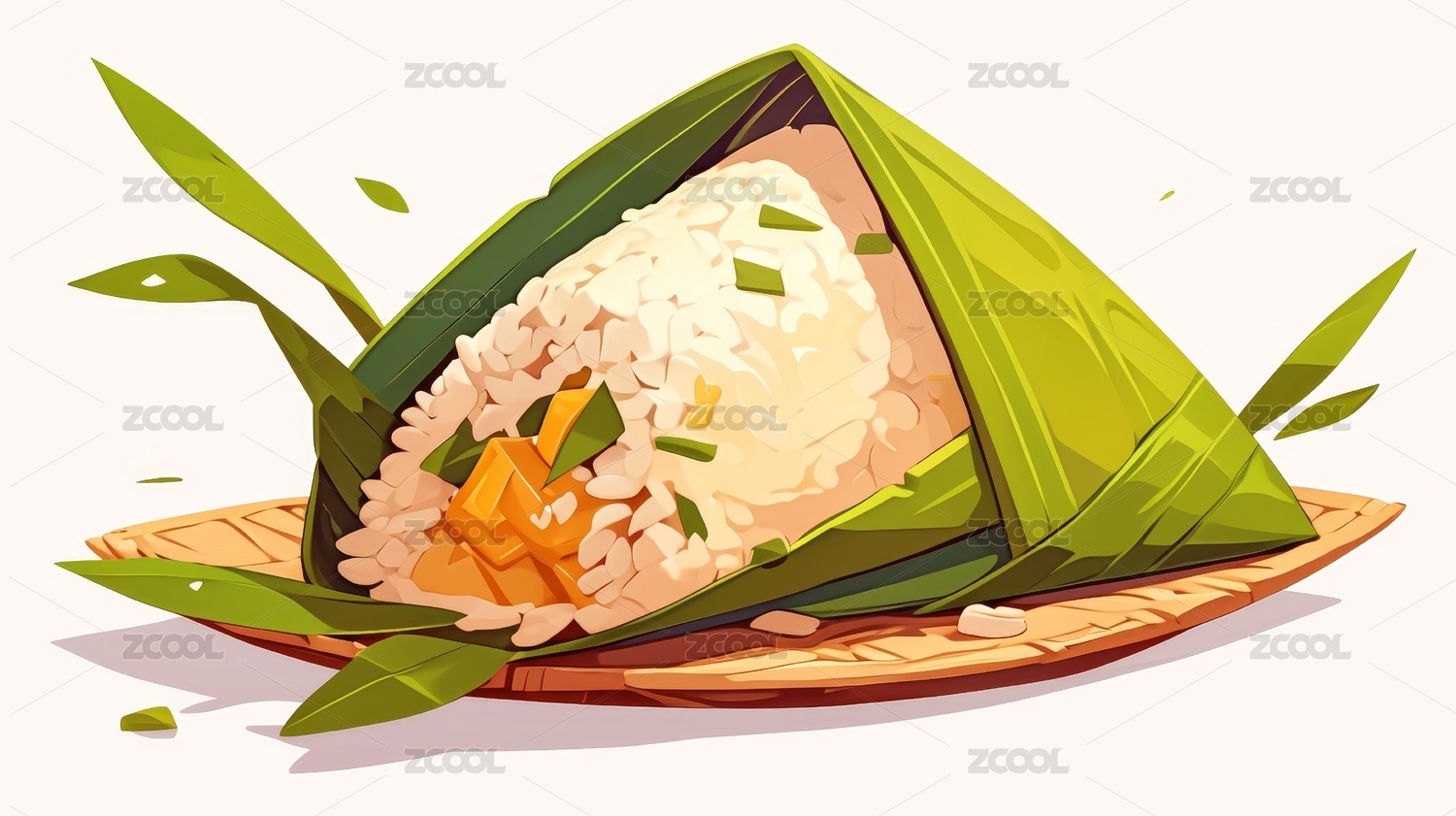 绿色粽叶包裹的咸蛋粽子矢量插画