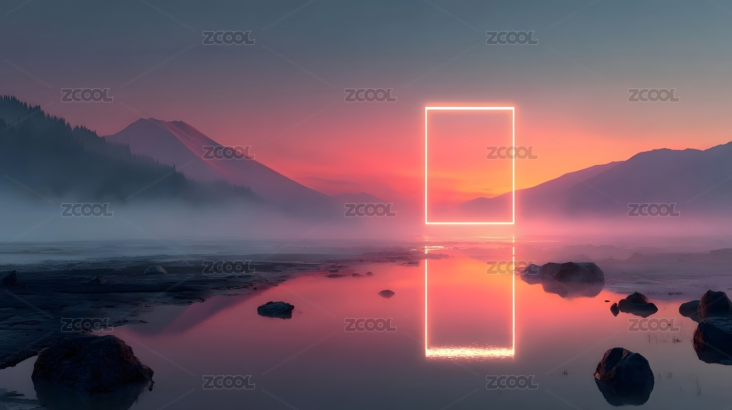 蓝紫色霓虹灯框架在野外空旷山间抽象背景
