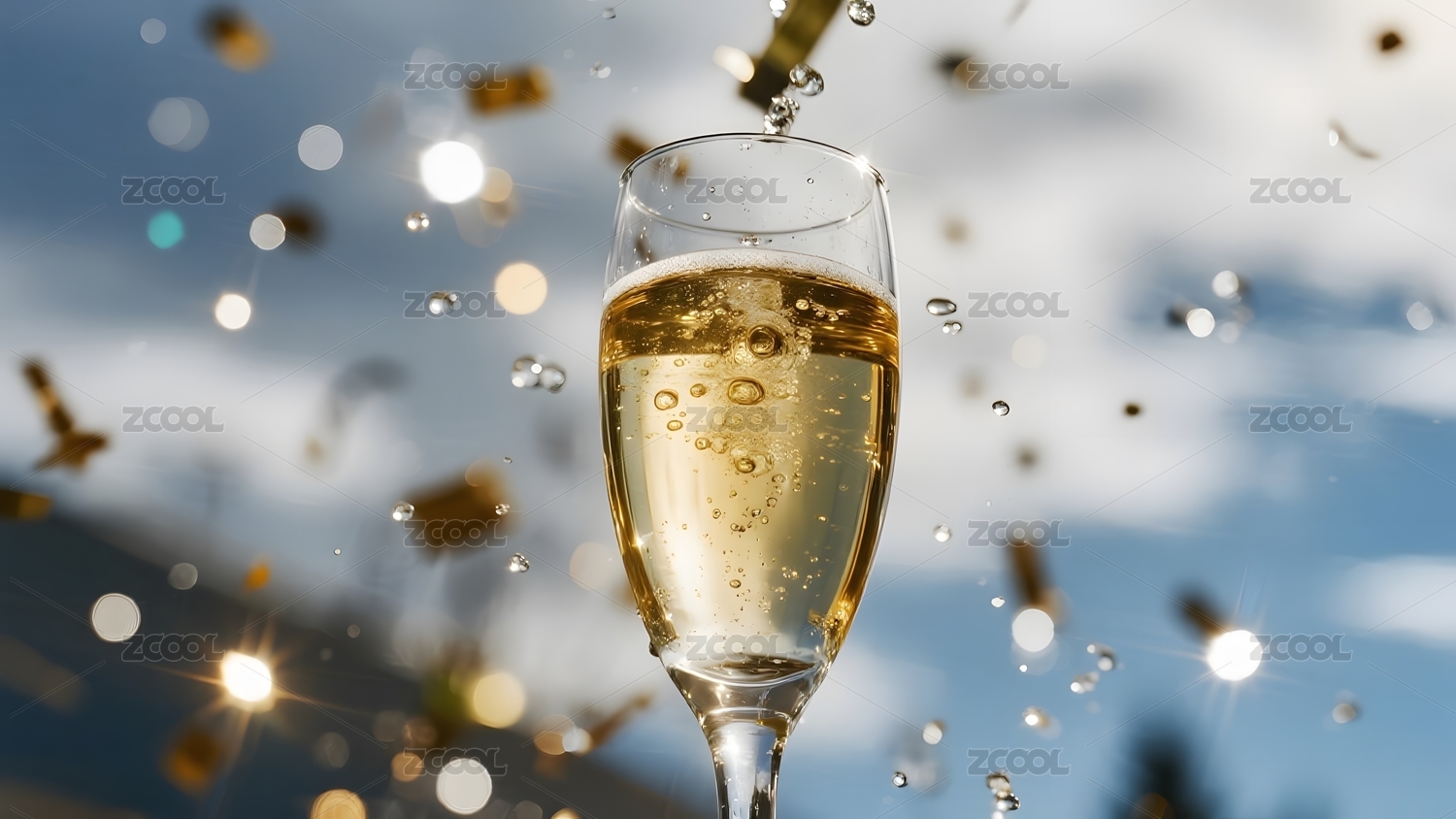 金色纸屑飘落香槟