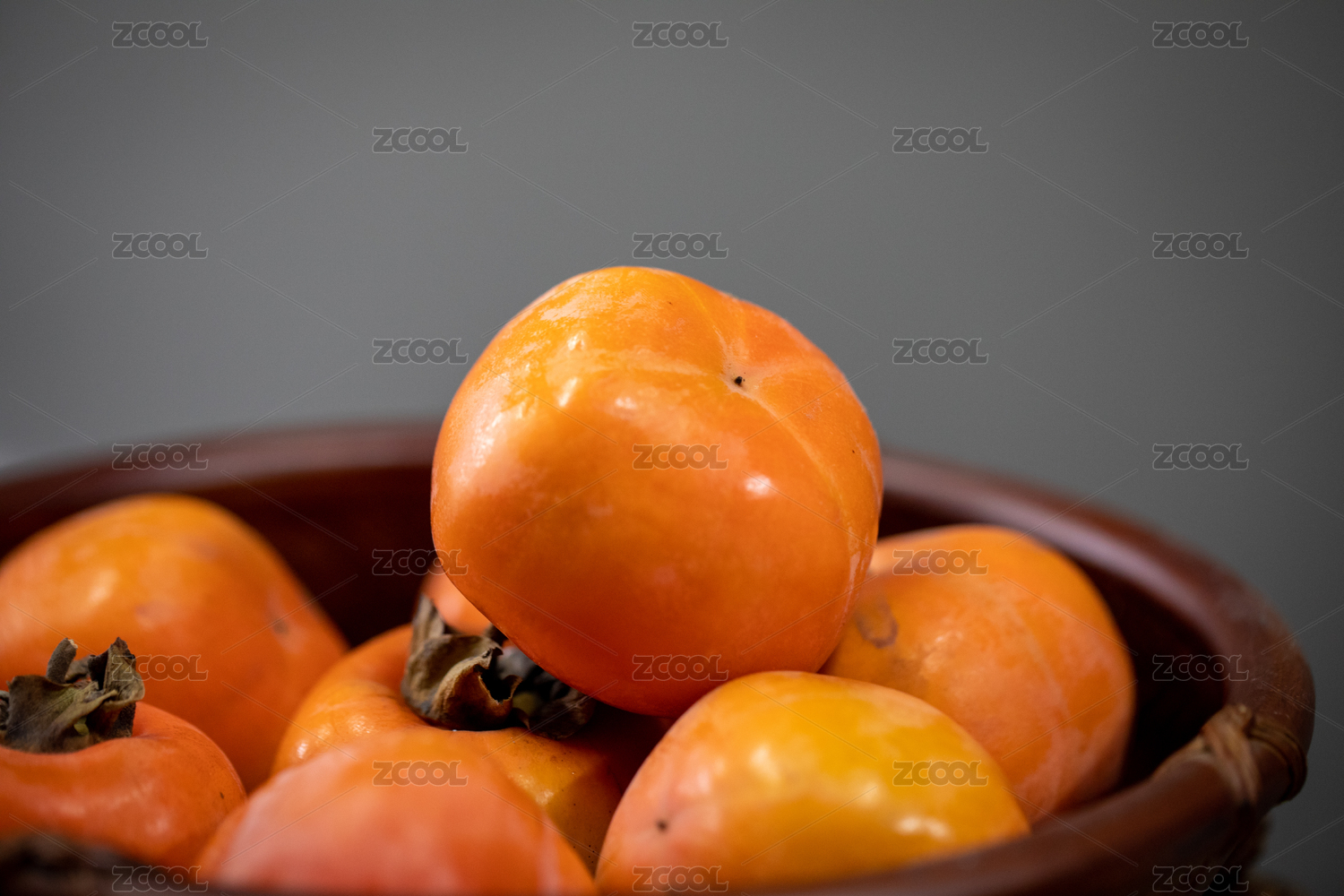 聚焦一堆饱满圆润的柿子超写实风格