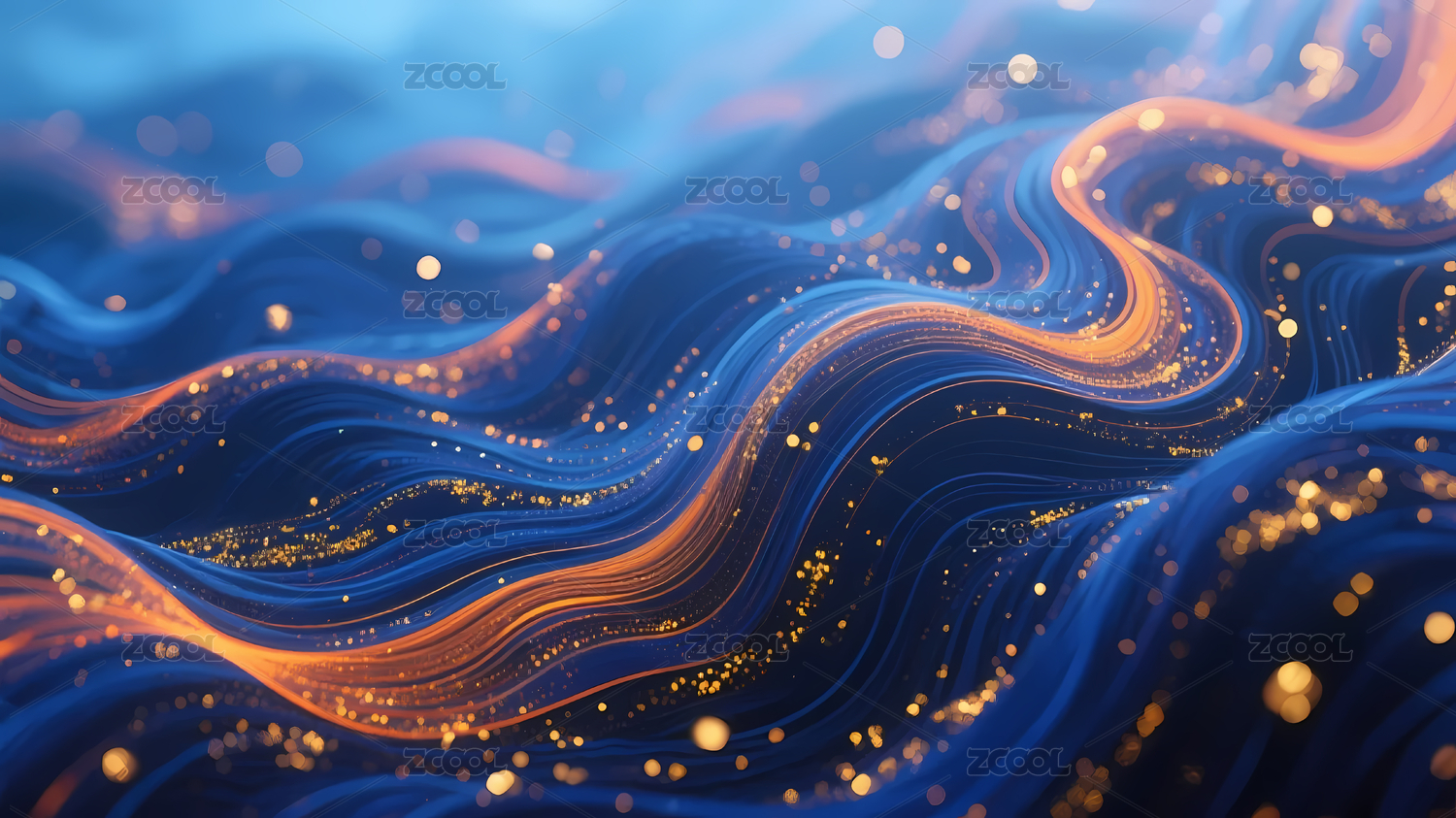 蓝色波浪金色光点背景
