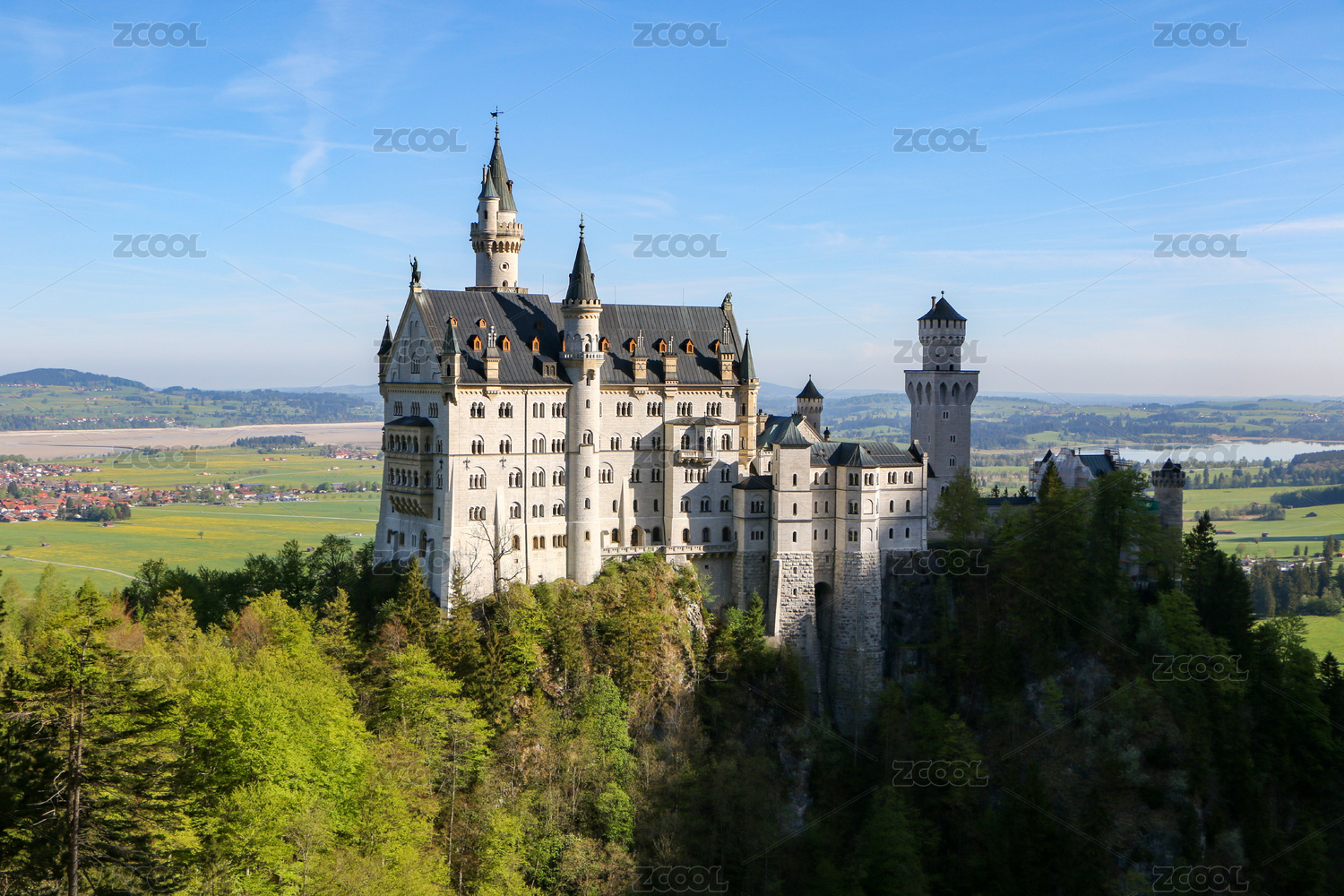 欧洲德国巴伐利亚西阿尔卑斯山麓的天鹅城堡