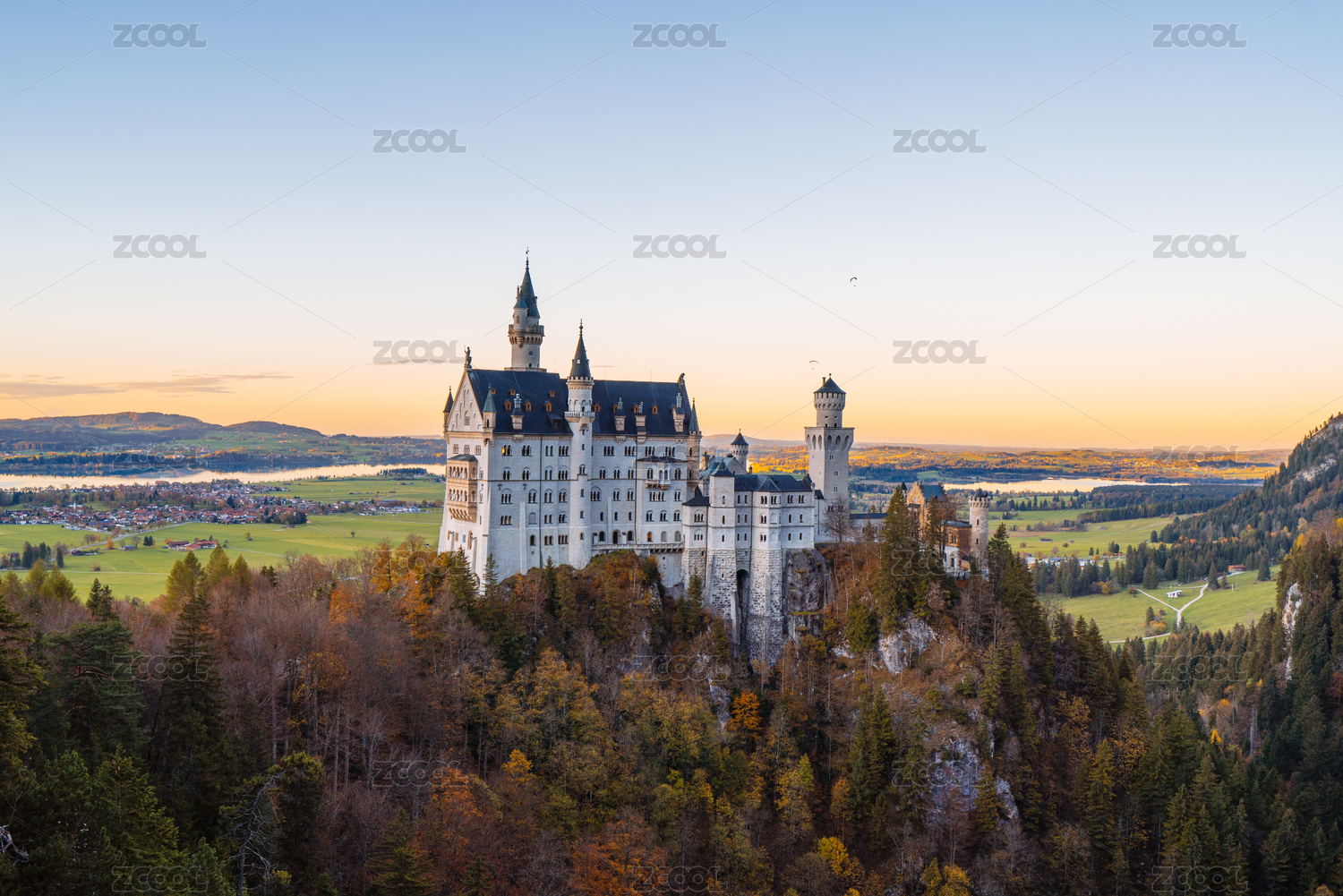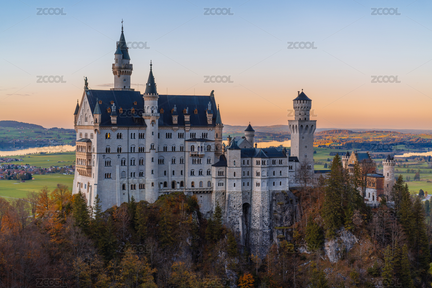 夕阳下的德国新天鹅堡城堡