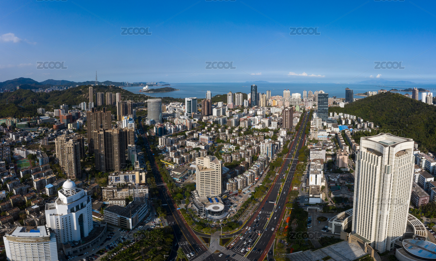 中国福建厦门城市天际线,厦门摩天大楼黄昏风景