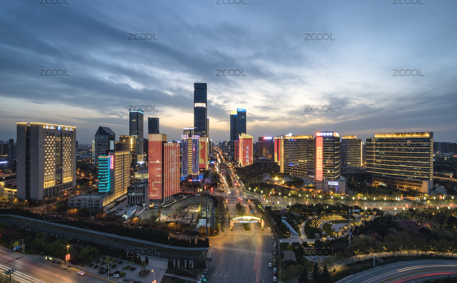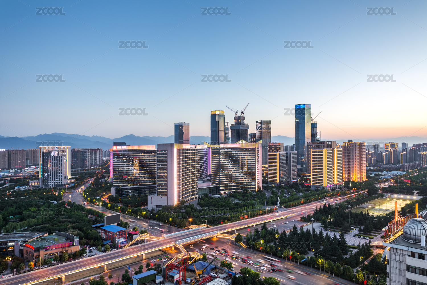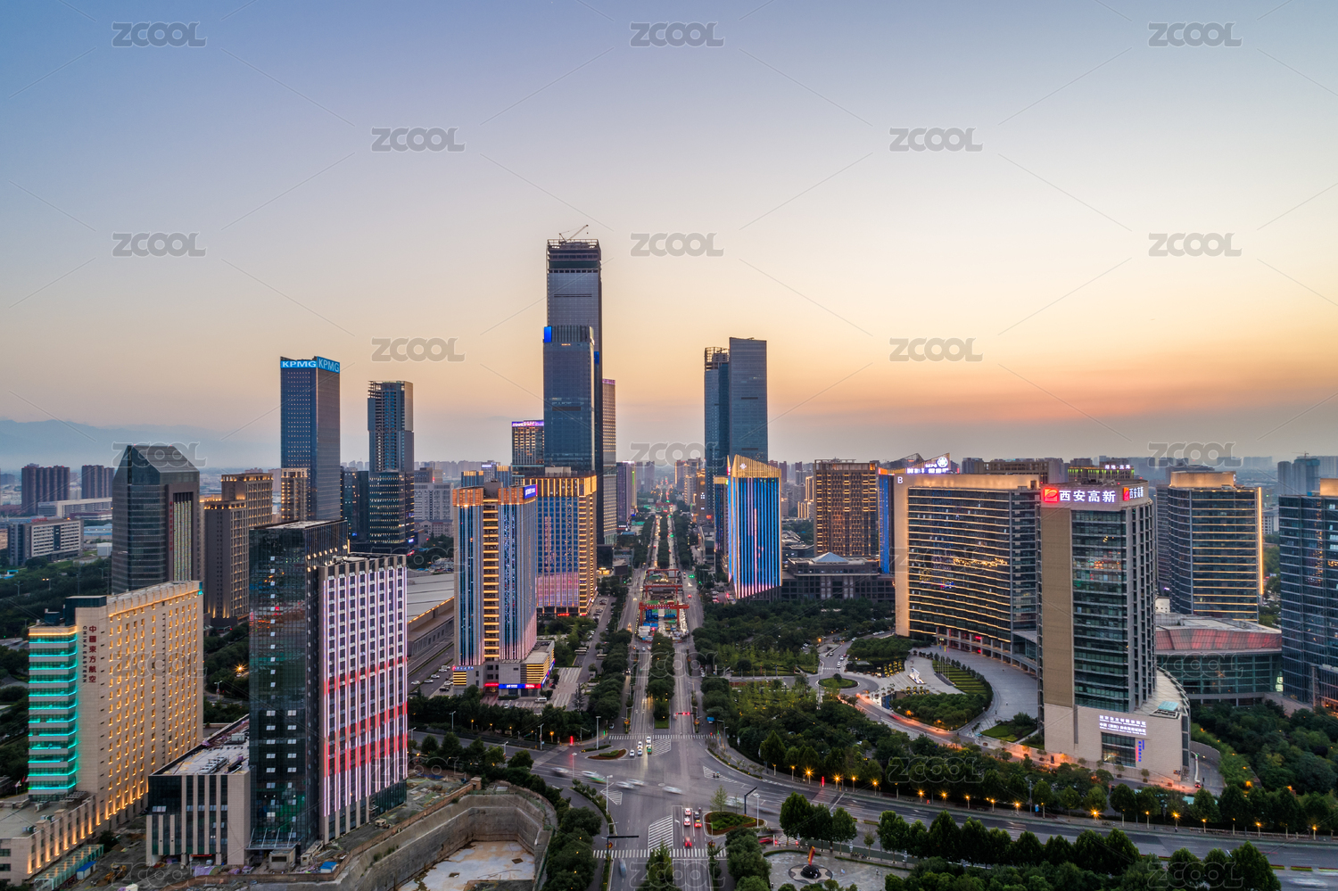 西安,锦业路,高新区,cbd,夜景,夕阳,晚霞,全景,鸟瞰,城市
