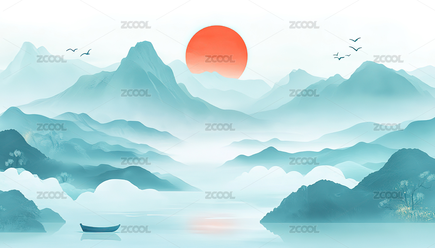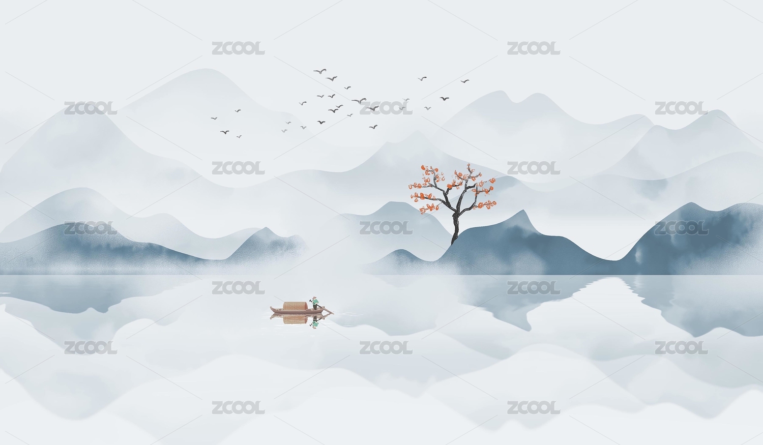 中国风,山水画,古风,景色,水墨,背景,山水,禅意,江南,渔船