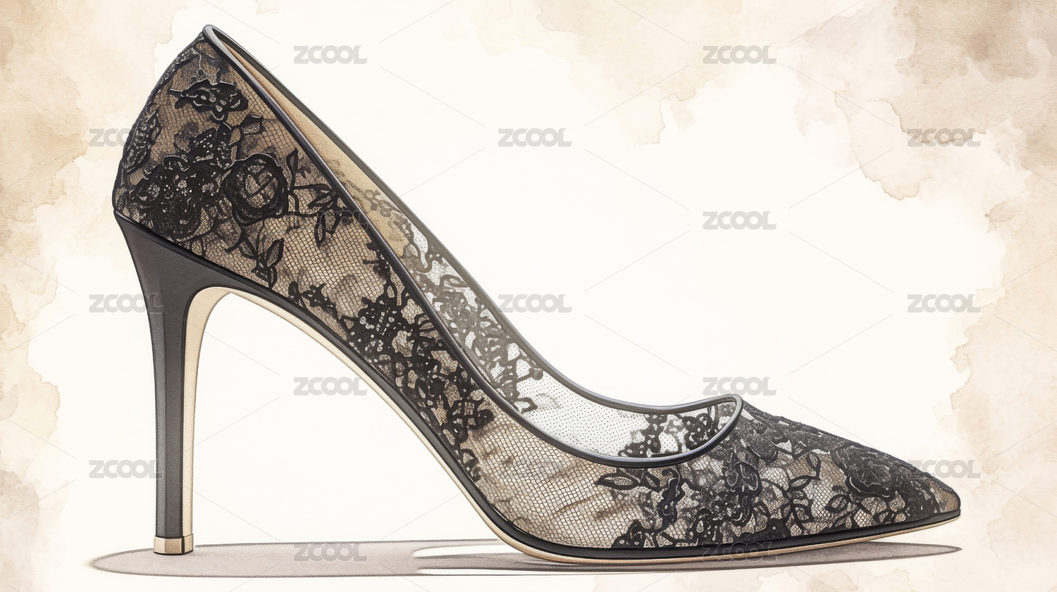 黑色蕾丝高跟鞋