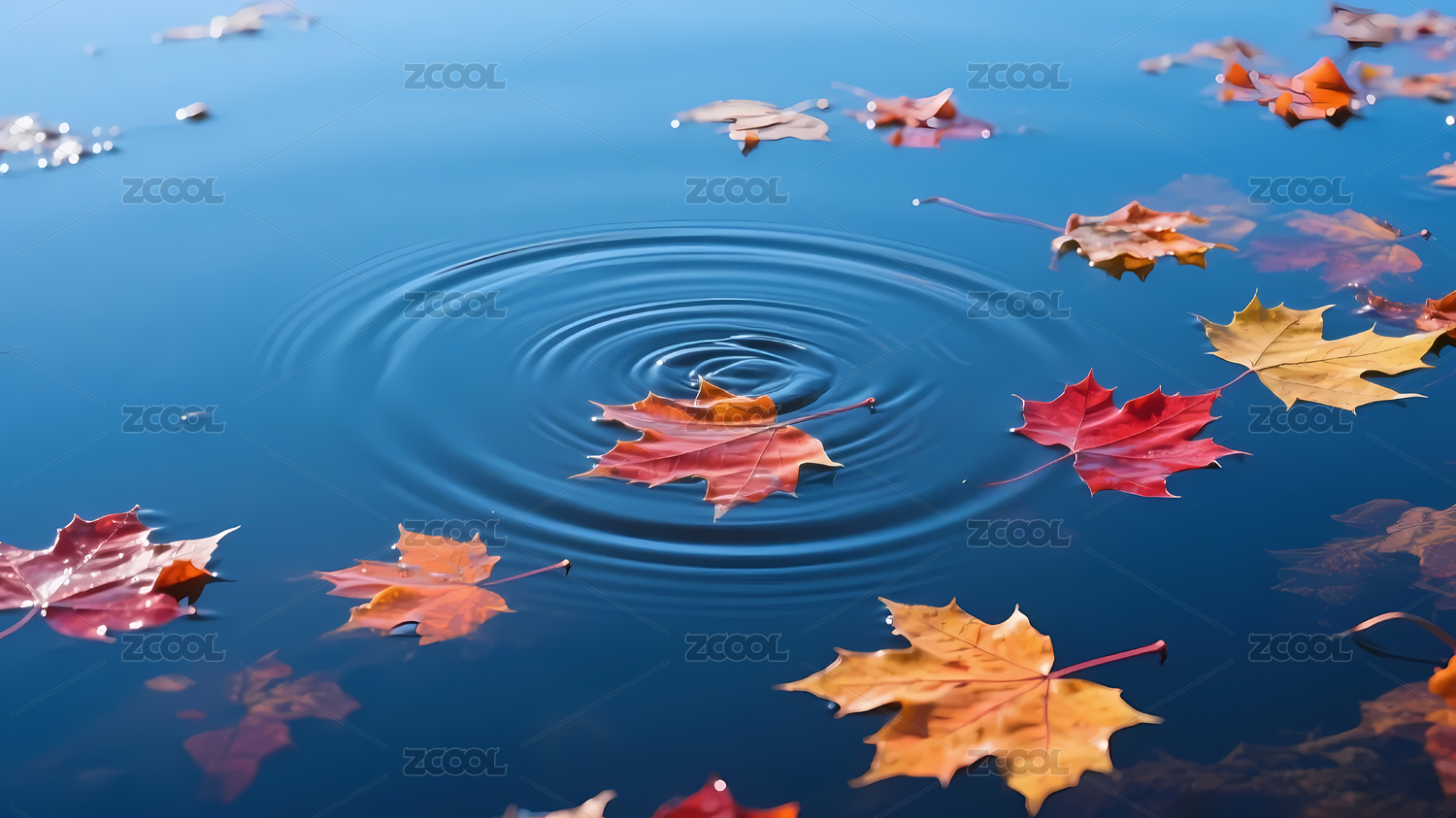 秋叶落在平静的水面上,泛起阵阵涟漪