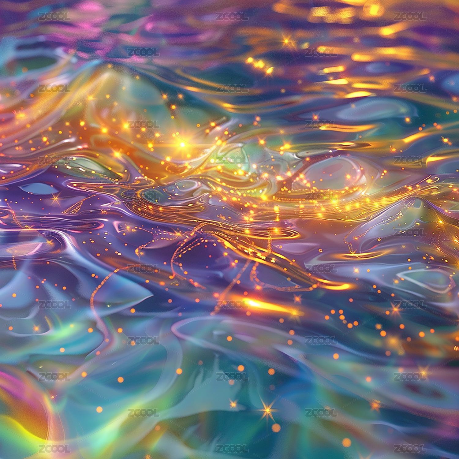 七彩全息发光水面抽象背景