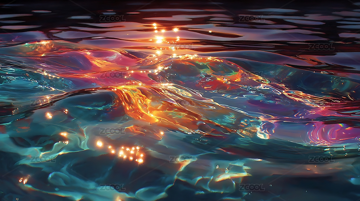 流光溢彩的水面波纹
