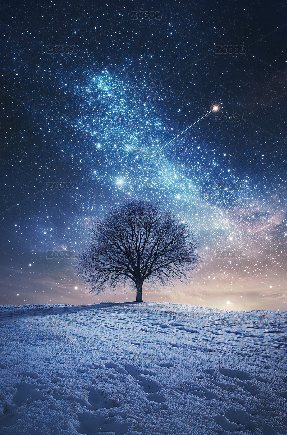冬夜雪地星空之路