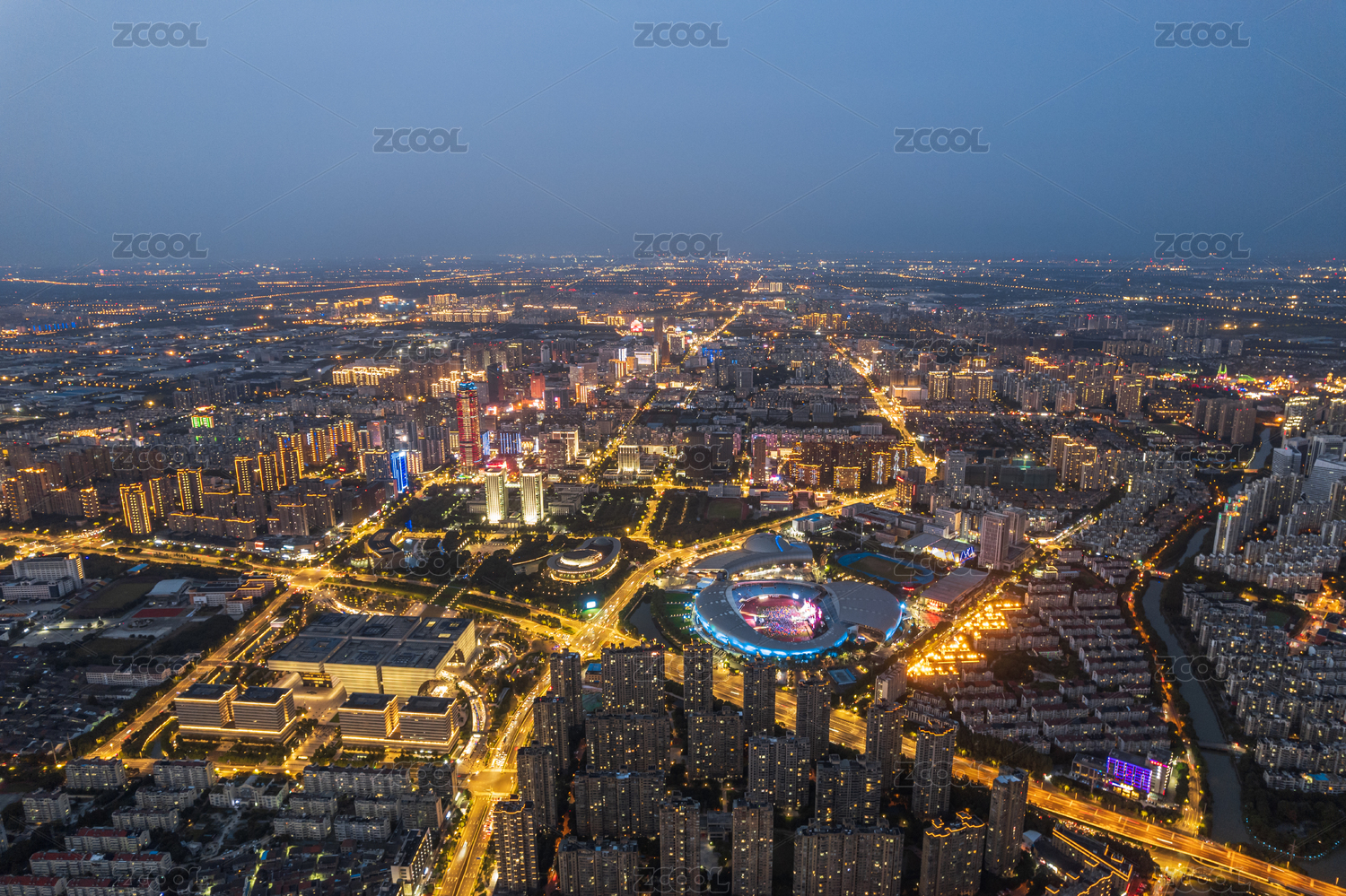 江苏省常州传媒大厦、奥体中心体育场夜景