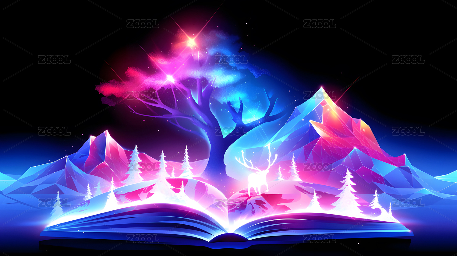 卡通3D书本星空背景