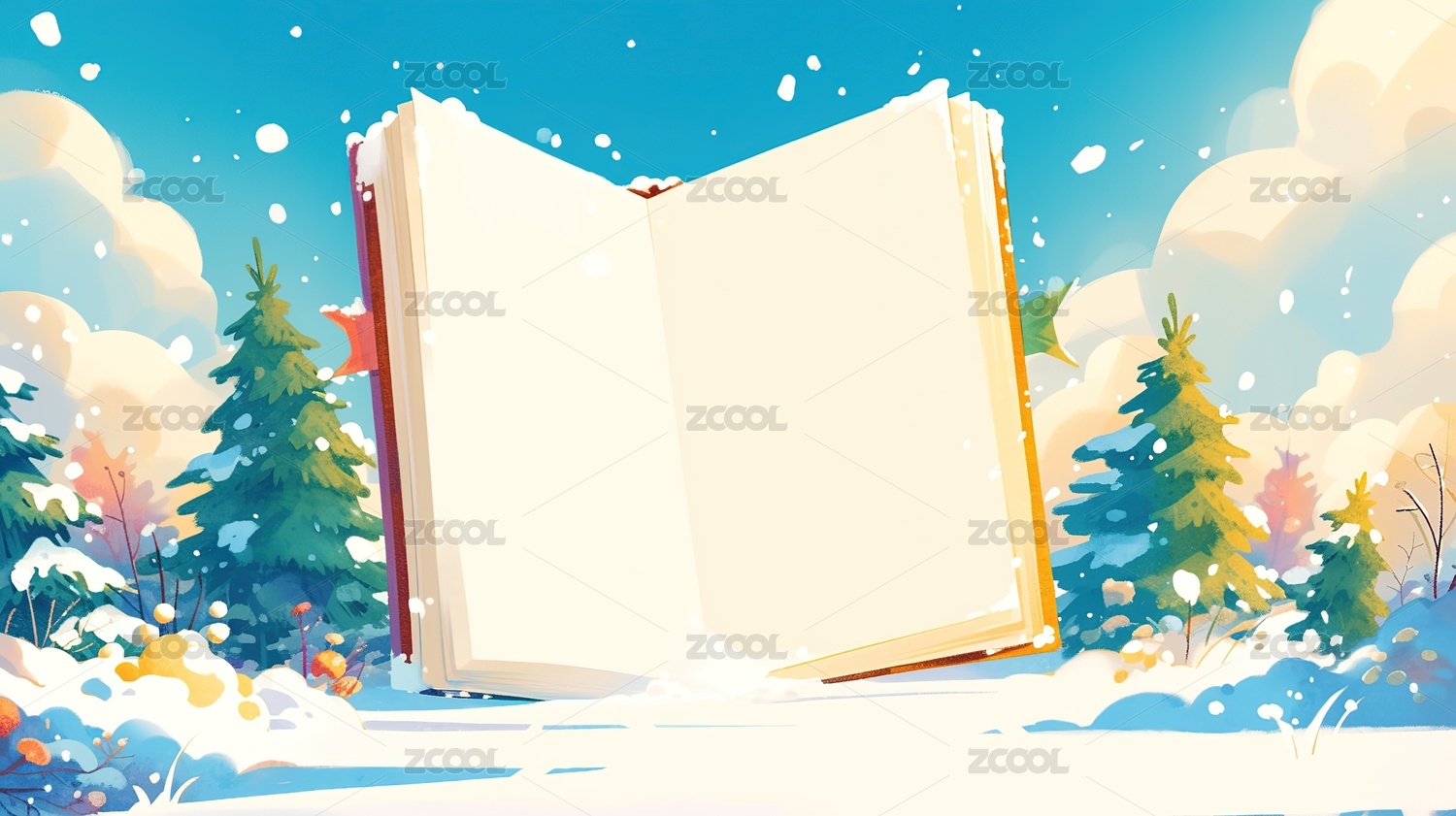 雪地上一本打开的书