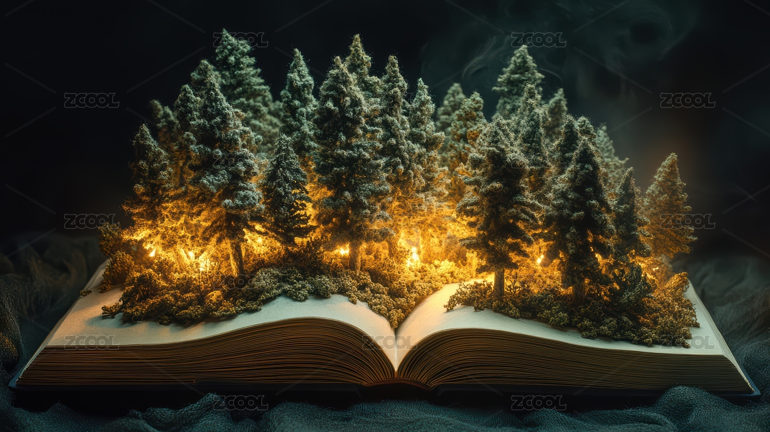 创意渐变书里的森林唯美插画