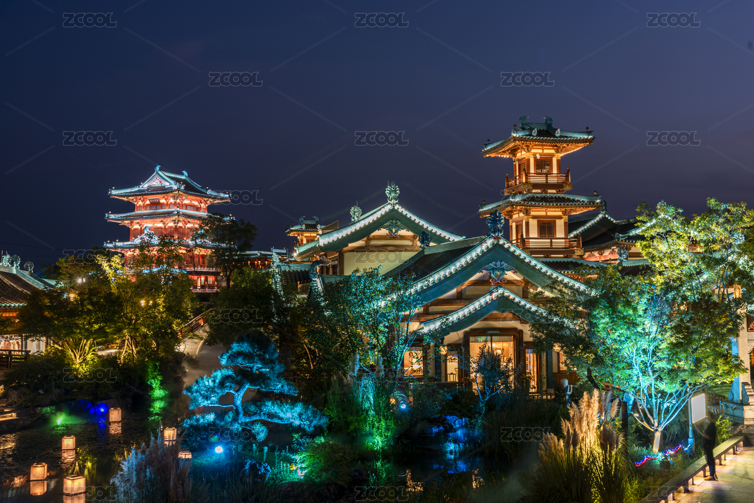 河南,洛阳,上阳宫,著名景点,户外,天空,建筑外部,风景,照亮,中式建筑