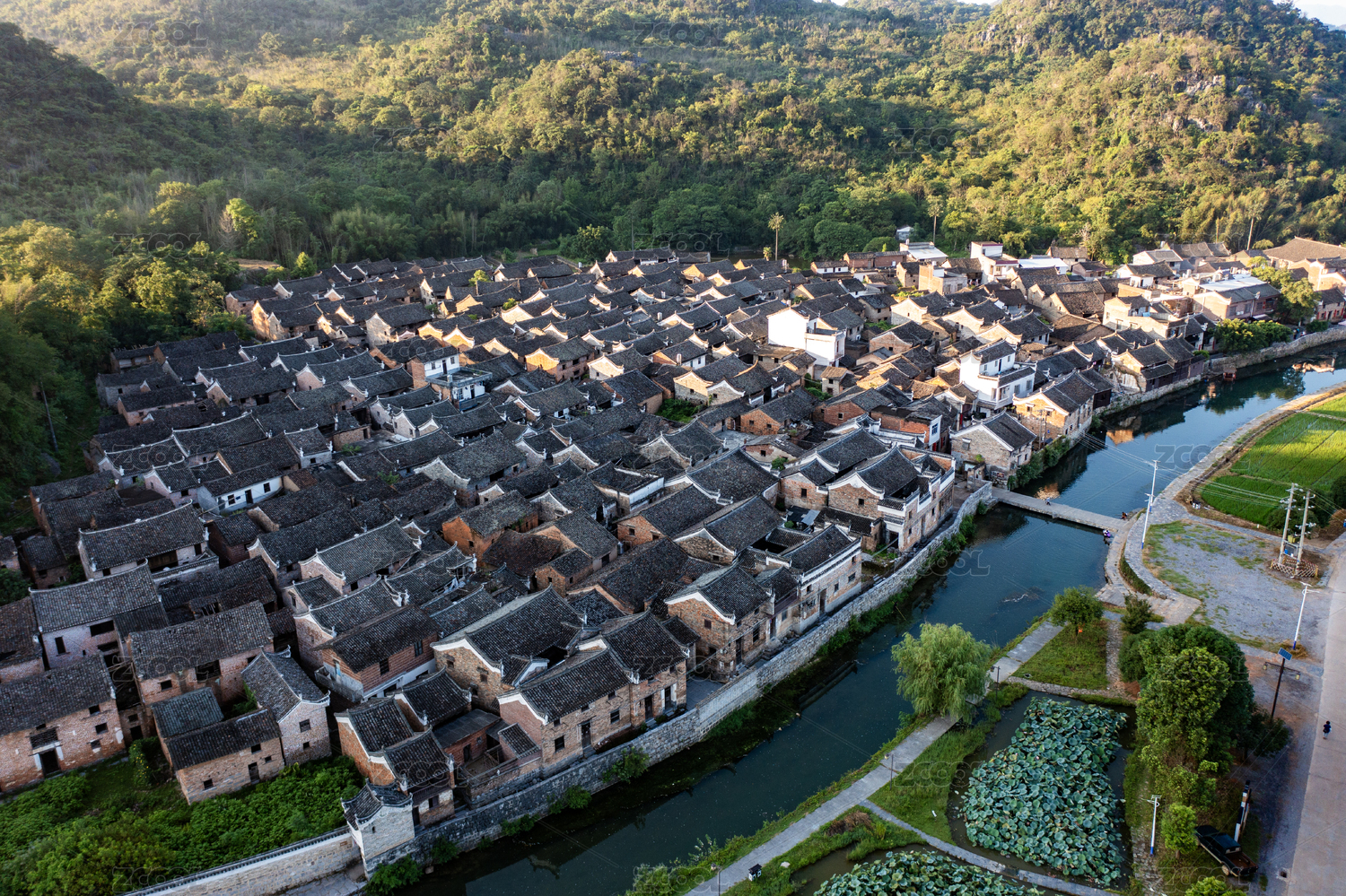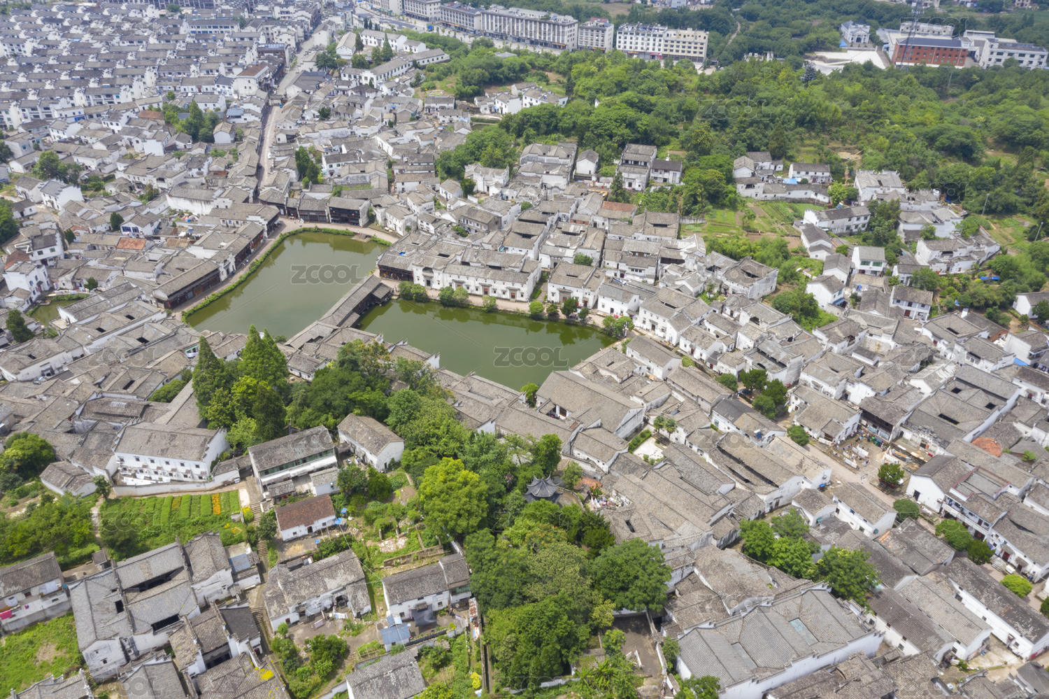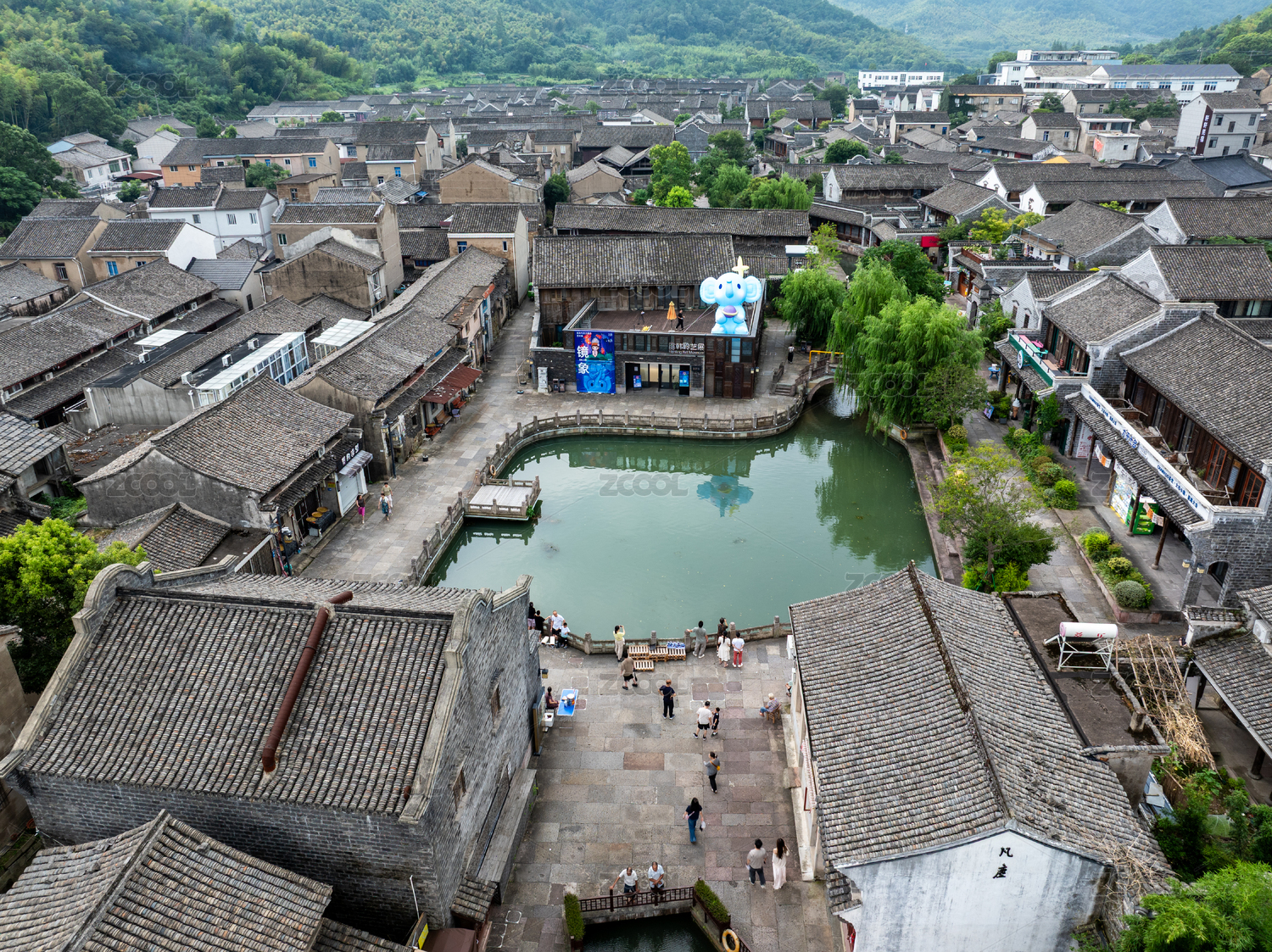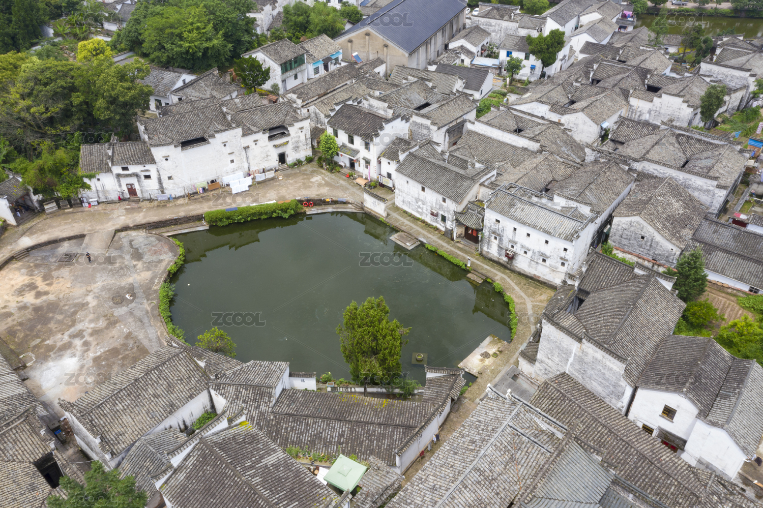 中国浙江省金华兰溪市诸葛八卦村航拍