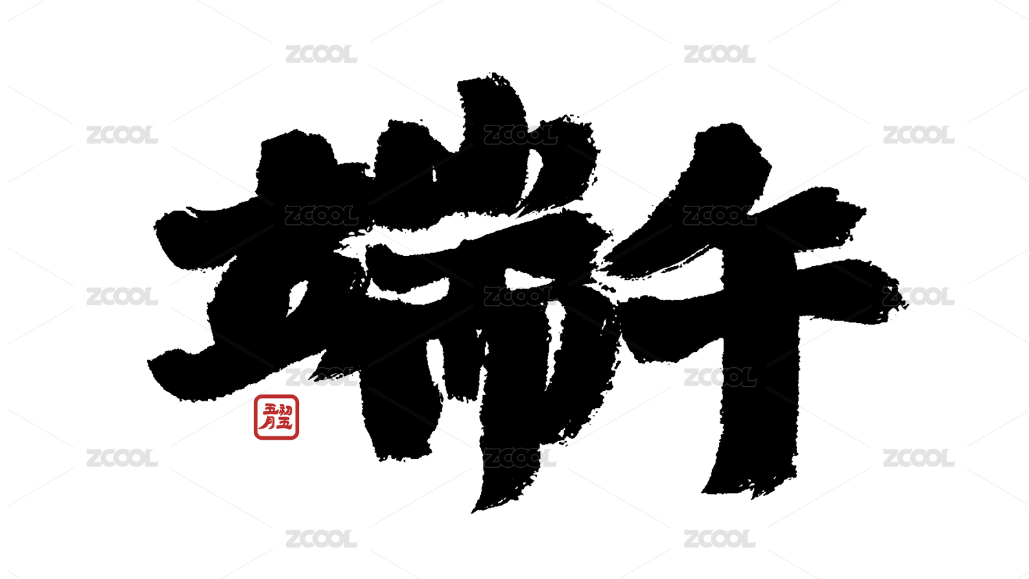 端午-毛笔字黑色红色矢量元素字体印章手写