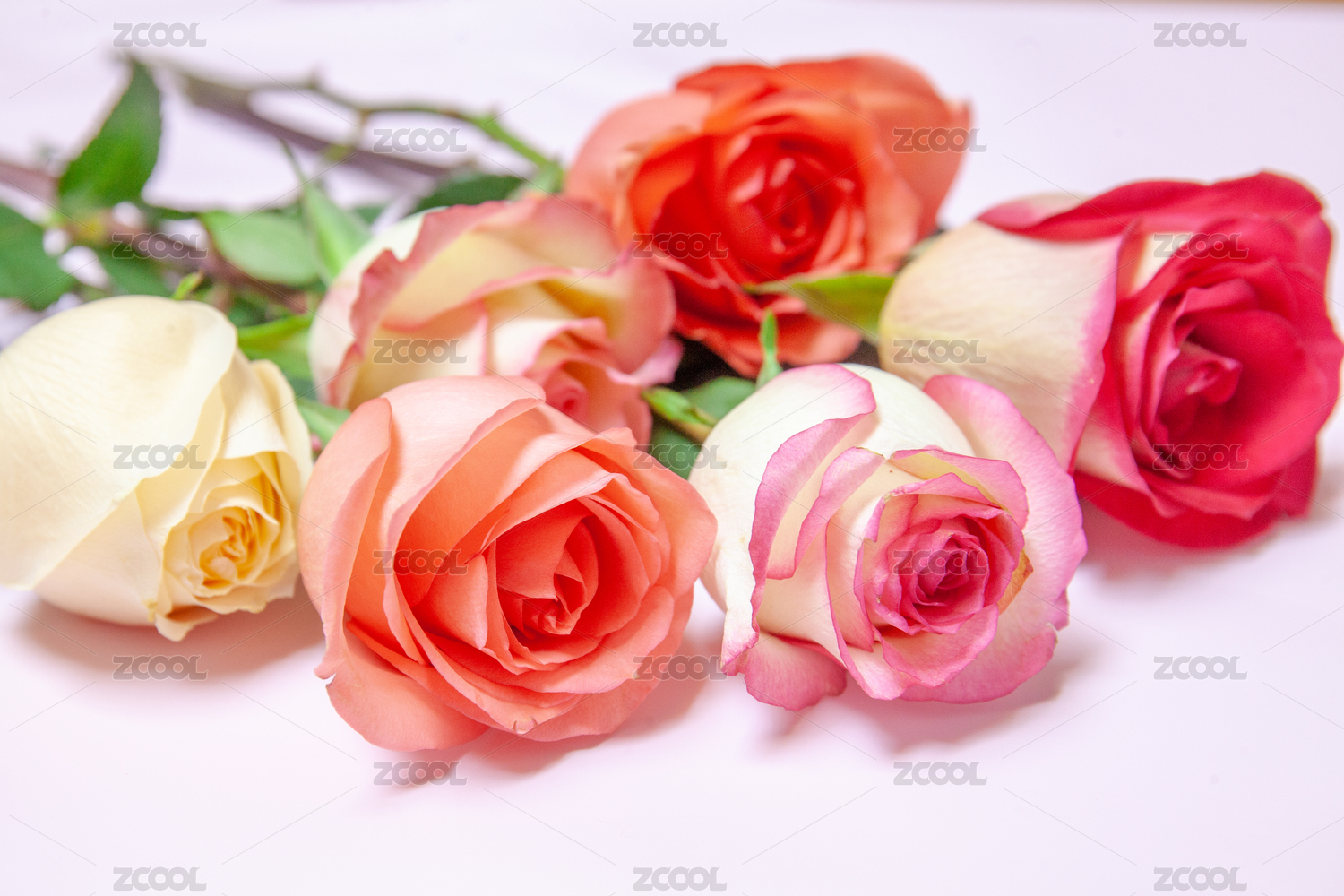 各种颜色丰富多彩新鲜盛开的玫瑰花